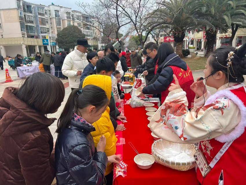 活动现场,“红马甲”志愿者与社区网格员忙碌的身影成为一道亮丽的风景线。在美食品鉴区,刚出锅的汤圆白白胖胖,在滚水中翻腾,散发着诱人的糯香。76岁的居民李奶奶端着热气腾腾的碗,笑得合不拢嘴,她拉着身旁志愿者的手感慨道:“以前过节就是自家吃,今天能和这么多老邻居、新街坊聚在一起,这日子是越过越有味了!”