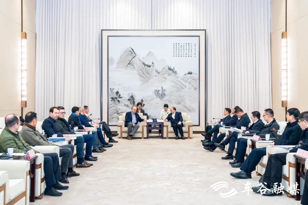 斯泰兰蒂斯执行副总裁、中国及亚太区总负责人奥立维,神龙汽车副董事长、总经理吕海涛,斯泰兰蒂斯中国区首席运营官忻天舒,神龙汽车党委书记、副总经理程军,区有关领导参加座谈。
