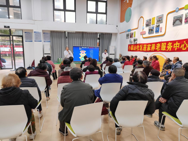 车谷融媒3月20日讯 3月18日,军山街道小军山社区联合社区养老服务中心,特邀武汉九康医院老年科主任医师胡万保,为辖区老人送上了一堂“听得懂、学得会、用得上”的健康科普课。