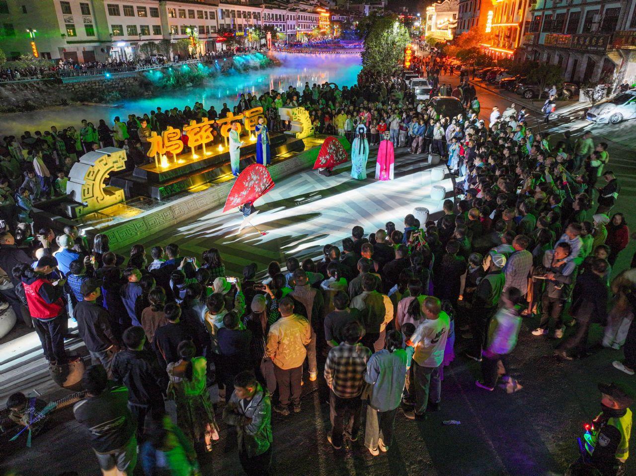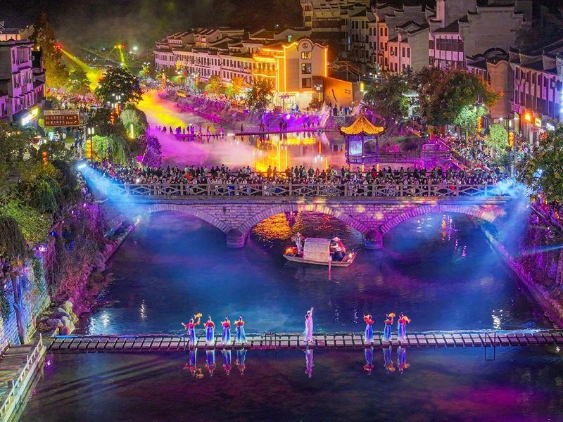 “白天上山避暑,晚上吃吊锅、看演出,比待在城里舒服多了!”武汉游客李敏擦着嘴角的油渍,带着孩子刚看完实景演出,又直奔吊锅城。一桌吊锅,一场演出,一段民俗,让夏季淡季彻底“热”了起来。