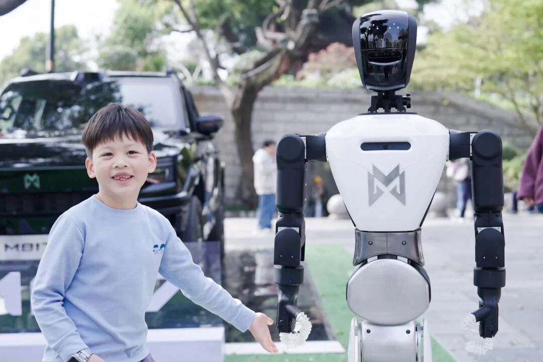 在猛士机器人互动体验区,这位“旅游搭子”忙得不亦乐乎。面对游客的提问,它切换自如,上一秒还在用标准播音腔讲解黄鹤楼的历史变迁,下一秒就切换到“话痨”模式,和小朋友们玩起了猜谜游戏。当它来到一旁的猛士M817硬派越野车旁,抬起机械臂做出“欢迎”手势时,现代工业的硬朗线条与未来科技的灵动感奇妙地融合在一起,瞬间点燃了现场气氛。
