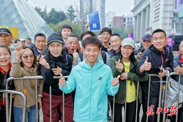 3月20日下午,2026武汉马拉松选手见面会举行,国内著名长跑运动员何杰现身活动现场,与跑友近距离交流。记者胡冬冬 摄