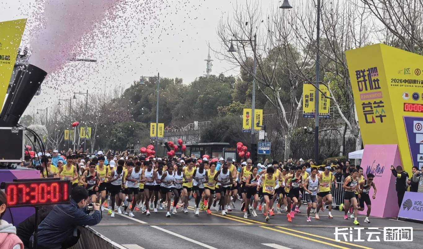 3月22日7时30分,2026武汉马拉松在汉口沿江大道三阳路口鸣枪起跑,30000名选手共同跨越一城两江三镇四桥五湖,感受大美江城的春日风光。今年汉马以“群樱荟萃”为主题,设马拉松项目(42.195公里)17000人、半程马拉松项目(21.0975公里)13000人。