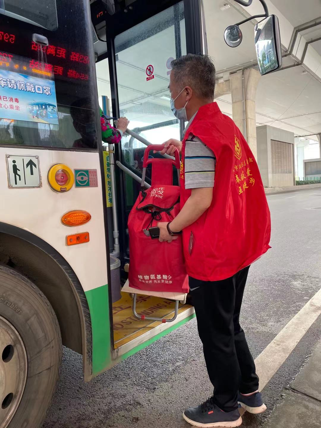 王家湾公交站紧邻王家湾商圈,节日期间,出行的人流量比平时更大。除了在现场协助居民乘车,遇到年纪大的老人,全永平夫妇主动上前搀扶,并帮助老人搬运行李。