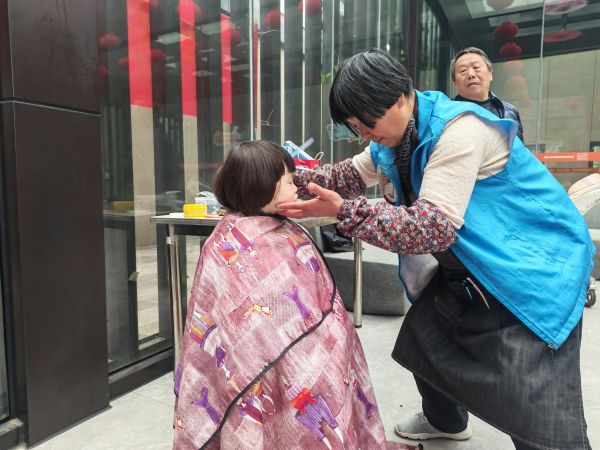 另一边的“龙抬头”公益理发区也排起了长队。经验丰富的理发师团队,为社区内的老人、儿童及有需要的居民提供免费理发服务。孩子们理完发,显得格外精神;老人们看着镜中清爽的自己,仿佛也年轻了几岁。
