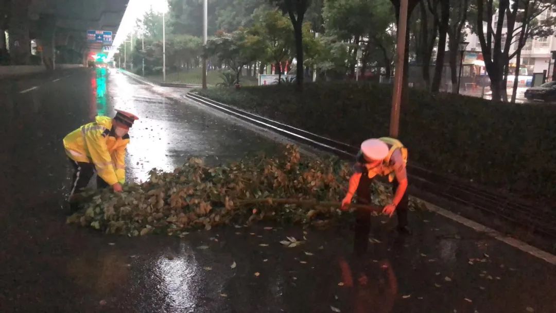 当日,大队共出动警力190余人次,警车21台次,汉警快骑30台次,在辖区东风大道太子湖路口、江城大道永旺路口、东风大道车北路口、兴城大道纱帽正街、汉南大道纱帽正街路口、东风高架全线等主要路口及易滞水路口路段增派警力,交通大队指挥室通过视频监控主动发现滞水点位9处和两处树木被大风吹倒,均已安排警力现场妥善处置。