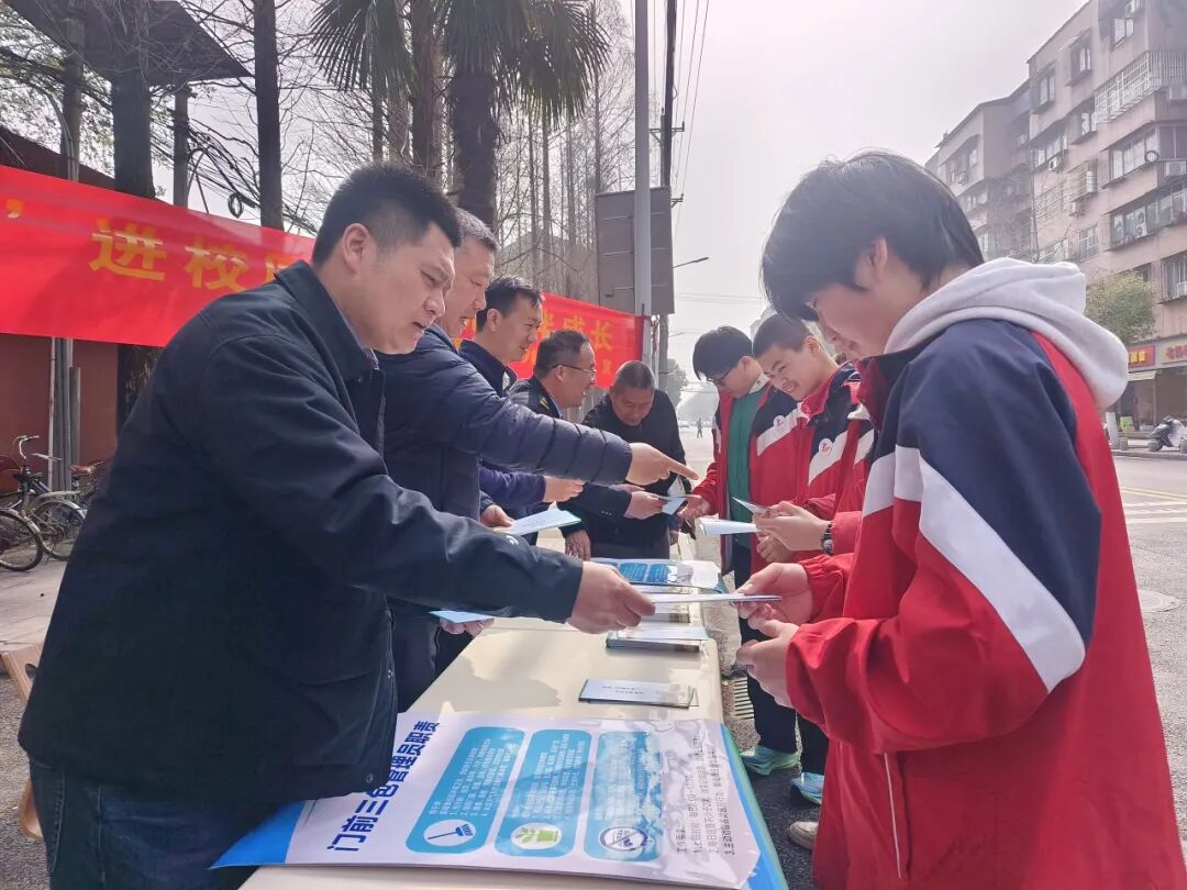 座谈会结束后,全体参会人员前往纱帽中学“门前三包”宣传点。活动现场,领导及执法人员为学校保安佩戴“门前三包员”专属袖章,发放扫把、撮箕等清洁工具,向师生逐一发放“门前三包”宣传手册,普及环境管护相关知识。“学习了‘门前三包’内容,我才知道这和我们息息相关,我会主动维护校园及周边环境,还要把这些知识讲给爸爸妈妈听!”纱帽中学学生代表在现场说道。