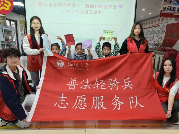 车谷融媒4月7日讯 4月3日,沌阳街道江大园社区联合江汉大学法学院普法轻骑兵志愿服务队组织开展“小小社区守护者——我的社区我来爱”周五课堂主题活动,通过沉浸式体验、趣味化实践,引导辖区儿童树立文明意识、践行守护行动,推动社区治理与儿童成长深度融合。