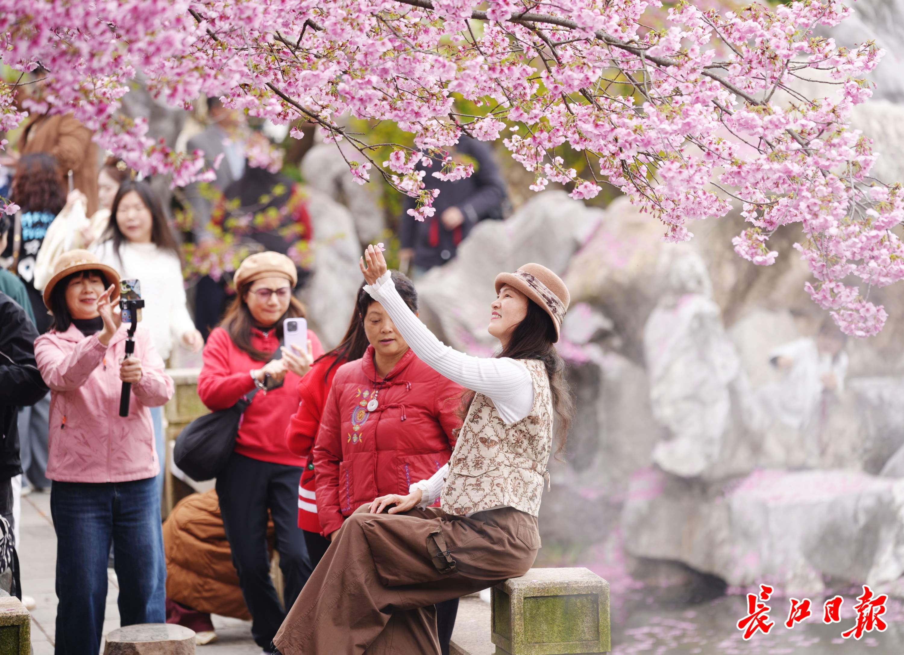 “站在晴川假日酒店的露台上,江风裹挟着花瓣飘落,对面是黄鹤楼,脚下是长江,这种‘江湖气’的浪漫,是武汉独有的。”3月24日上午,来自广州的游客陈先生感慨,“以前总觉得樱花是柔美的,但在武汉,它有了大江大河的磅礴。”
