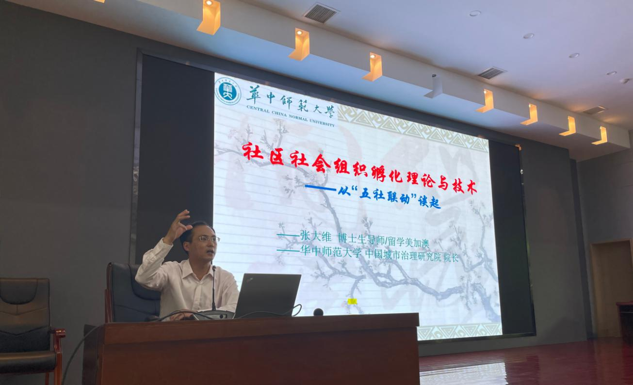 培训会上,沌阳街公共服务办公室负责人刘筱轩介绍了今年培训计划,并勉励学员珍惜学习机会,学有所获、学有所成。培训还邀请华中师范大学中国城市治理研究院执行院长张大维教授授课,从专业理论、实务技巧和案例分享等方面,阐释与分析了社区社会组织的概念体系、发展状况、培育技巧等内容。