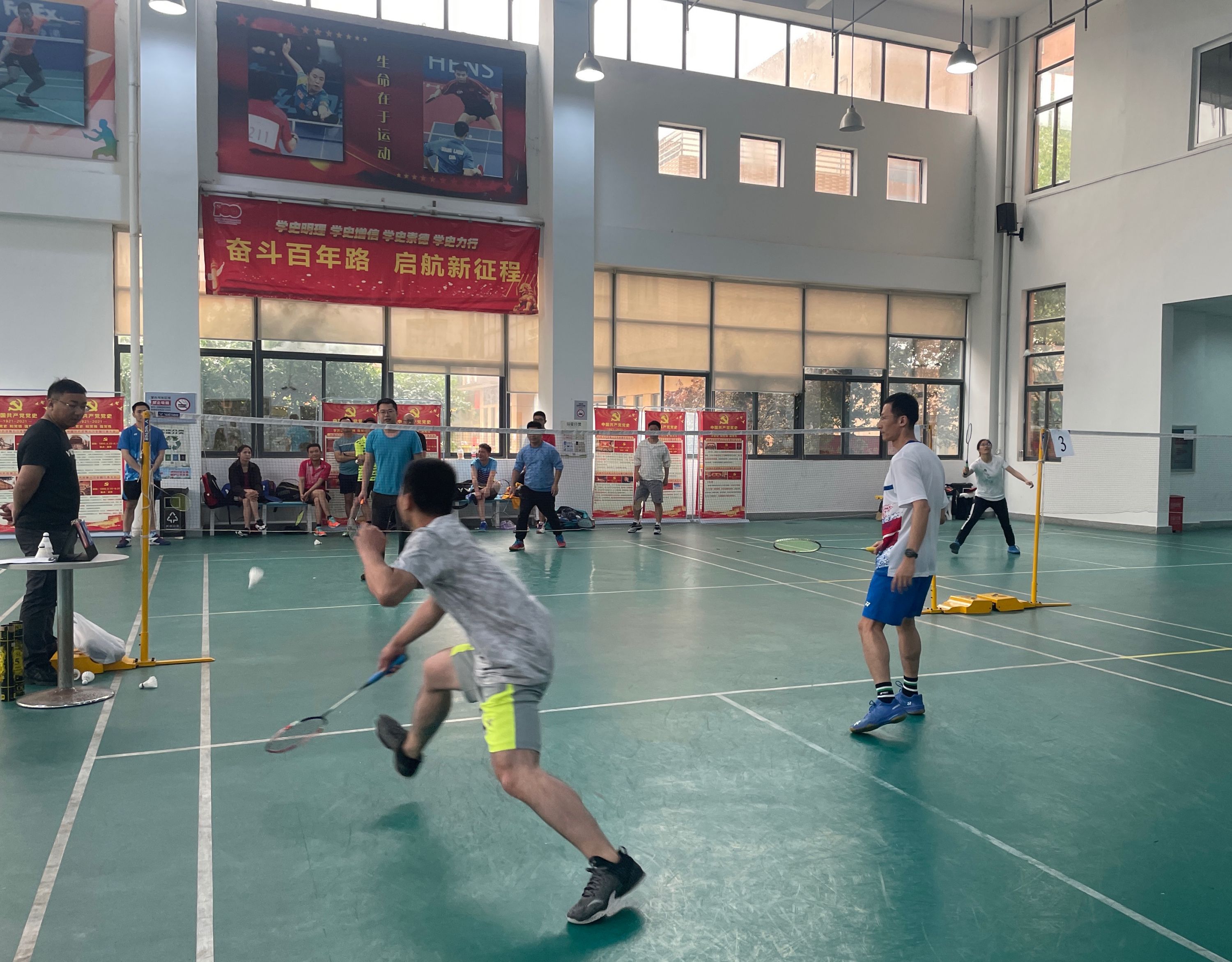 “通过举办本次羽毛球比赛,进一步激发广大职工将球场上奋勇争先、敢于进取的体育精神转化为助力企业发展的磅礴力量,以良好的精神风貌迎接建党一百周年。”社区负责人表示,全力北羽毛球协会成立于2017年5月,目前共有来自辖区21家企业的会员200余人,是社区成立最早、普及率最高、人数最多的协会。为落实党史学习教育“我为群众办实事”工作要求,推进全民健身活动持续协调发展,给喜爱羽毛球运动的职工朋友们提供更好的环境,社区进行更换地板胶、调整灯光以及增添更衣室等优化措施。