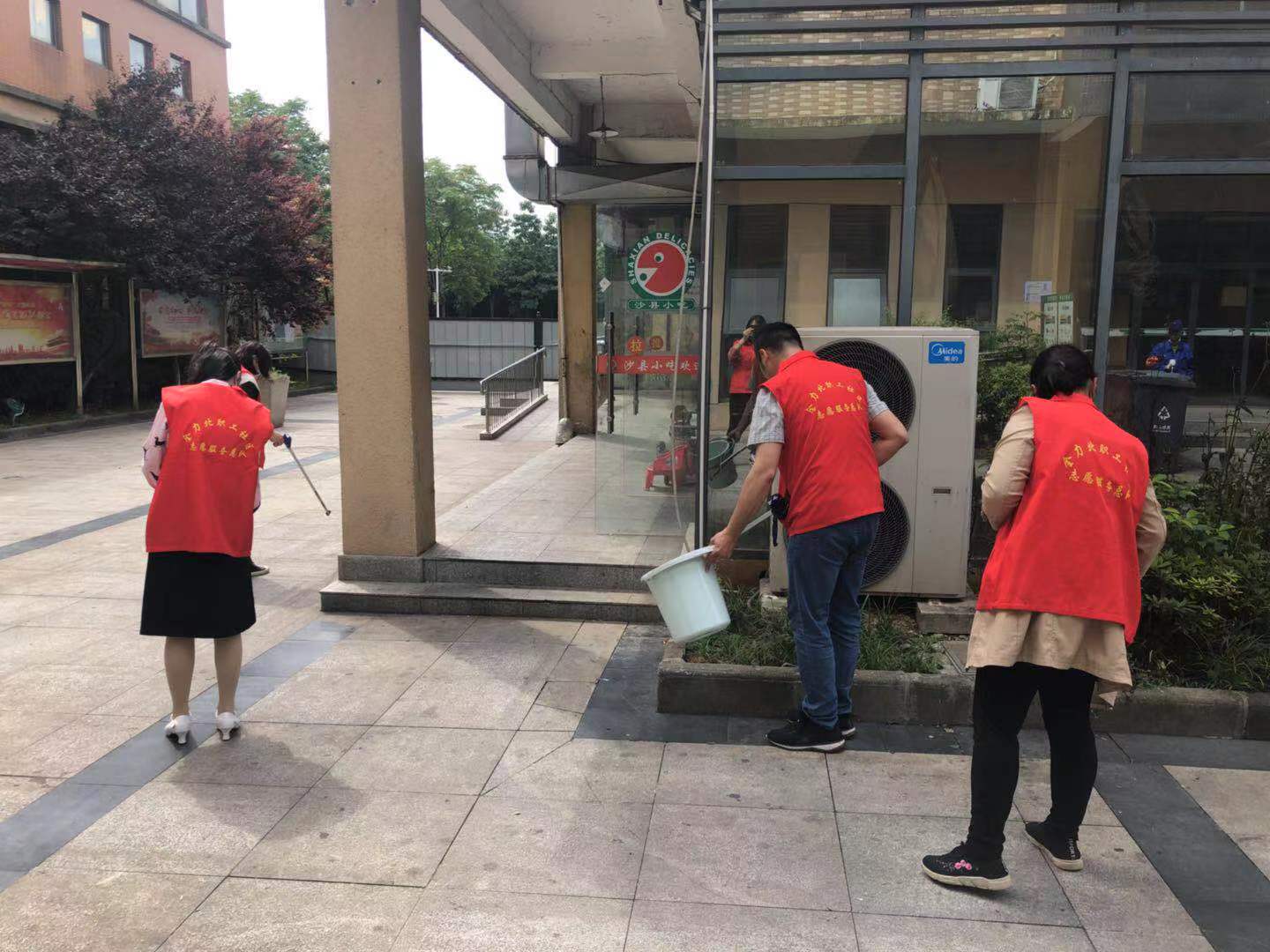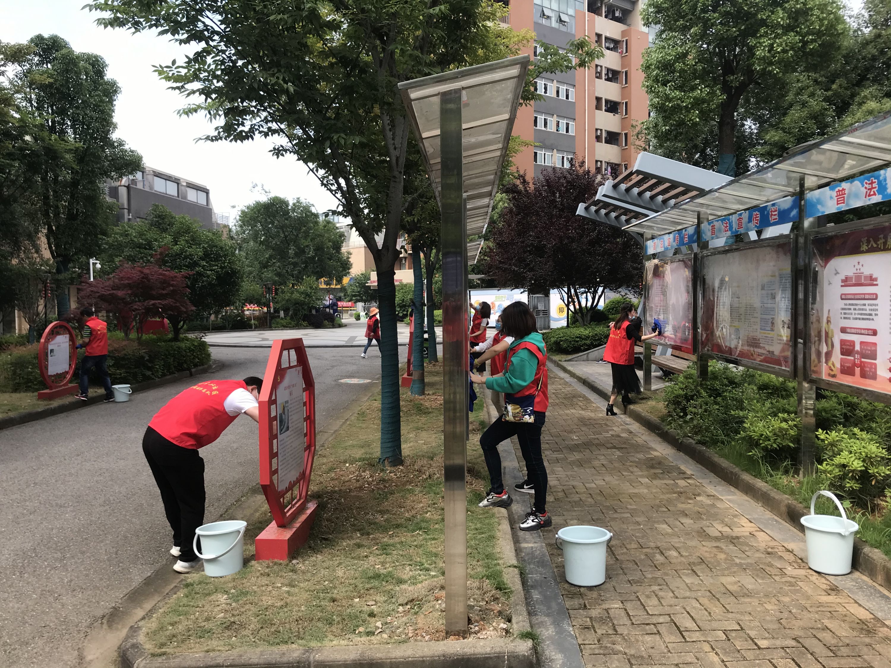 经过2小时的劳动,社区绿化带、路面更干净了、宣传栏变亮了,社区环境更美了。