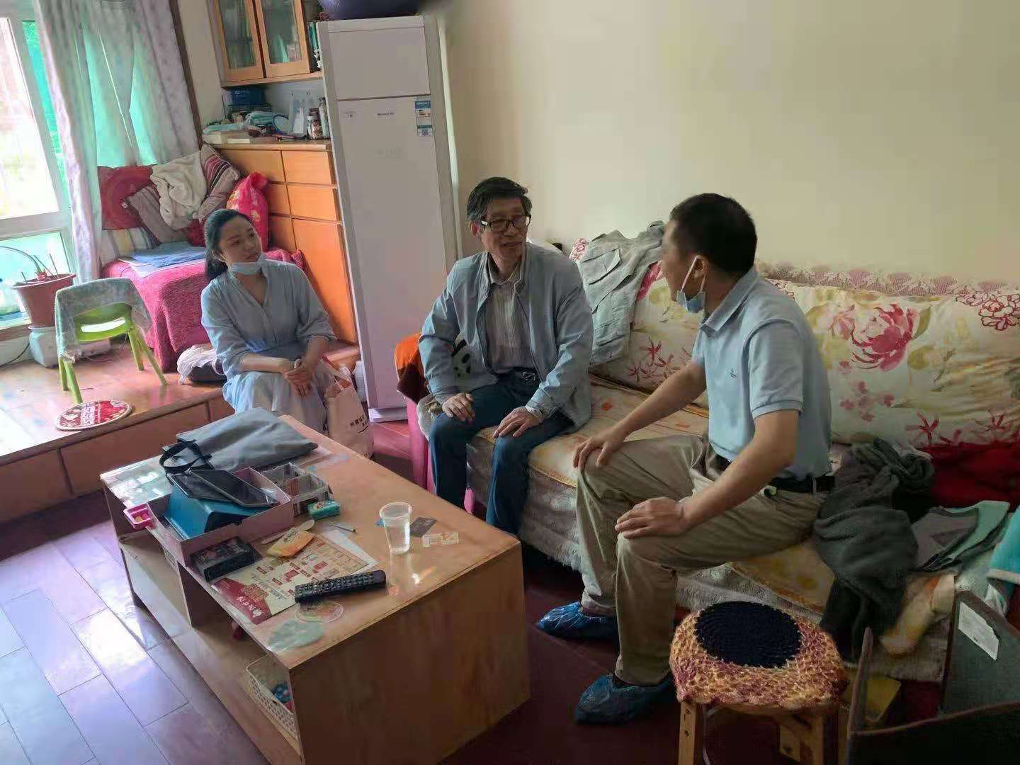 2位有老年工作经验的党员同志在社区两名工作人员带领下,上门找反映问题的老张同志谈心,并给老张同志带了一套党史学习的书籍。