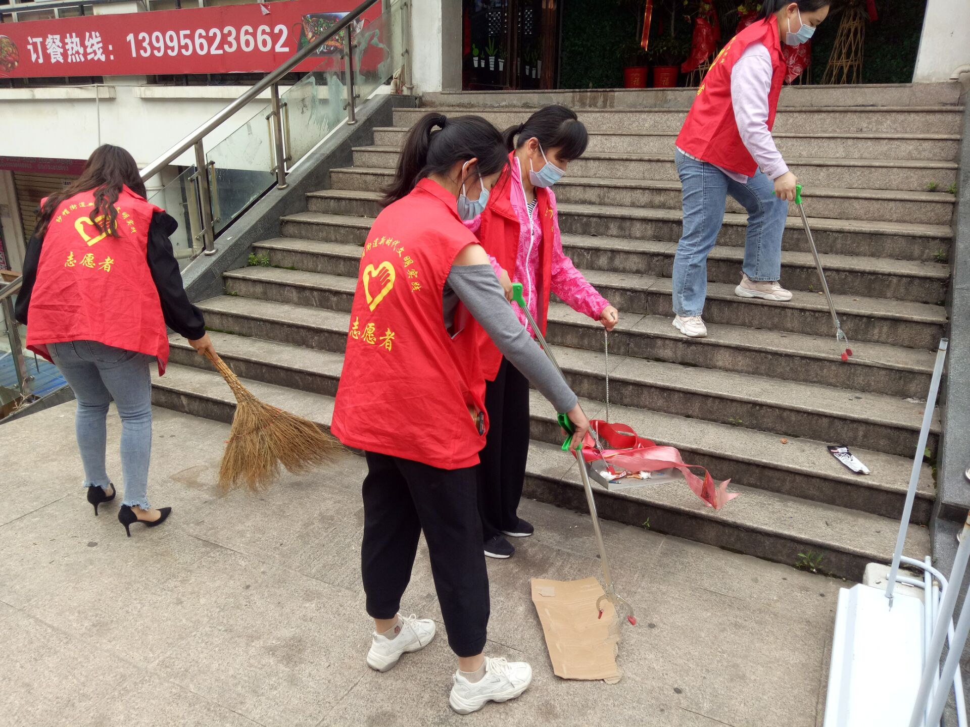 活动中,大家拿起扫把、铁锹、持物夹等卫生工具,对居民楼卫生死角、商业步行街以及周边易造成积水、杂物堆放等暴露垃圾问题,开展了一场地毯式的清理行动。大家分工协作,秒变“清洁工”,干劲十足,不漏掉一个烟头,不留下一个卫生死角,对沿街商铺旁的人行道路以及裸露的白色垃圾和杂物进行全面彻底清理干净。同时,对乱晾晒等不文明行为进行整改,为居民营造一个健康的生活环境。
