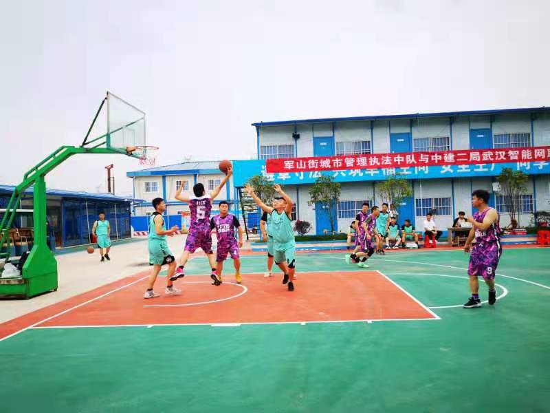 车谷融媒5月26日讯 为加深城管和企业之间交流,增强团队活力,促进双方友谊,5月25日下午,军山街城管与中建二局武汉智能网联汽车测试场项目企业进行了一场篮球友谊赛。