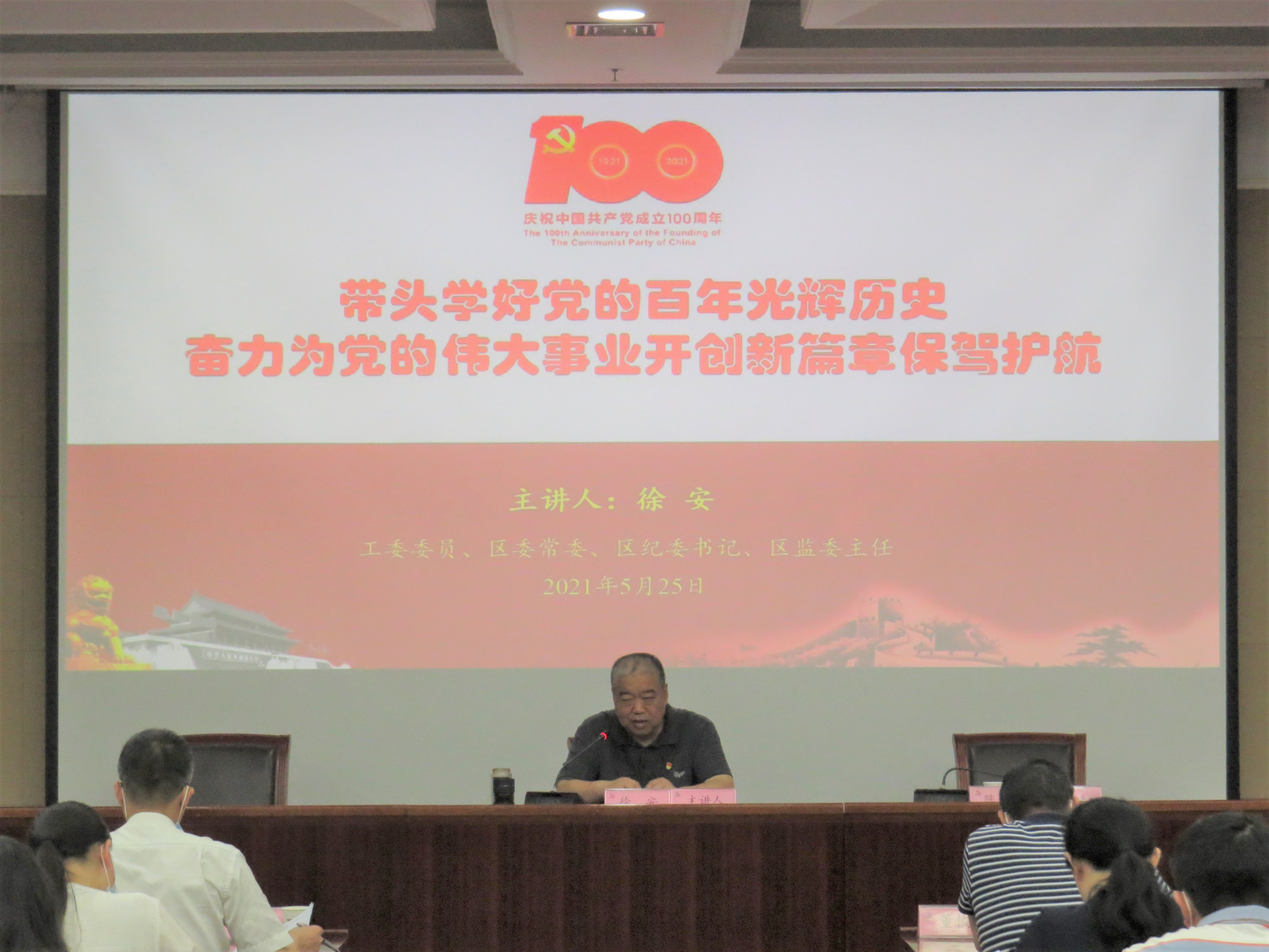 区纪委书记、区监委主任徐安作开班第一讲,为参训学员及区纪委监委机关全体干部讲授《带头学好党的百年光辉历史奋力为党的伟大事业开创新篇章保驾护航》主题党课。