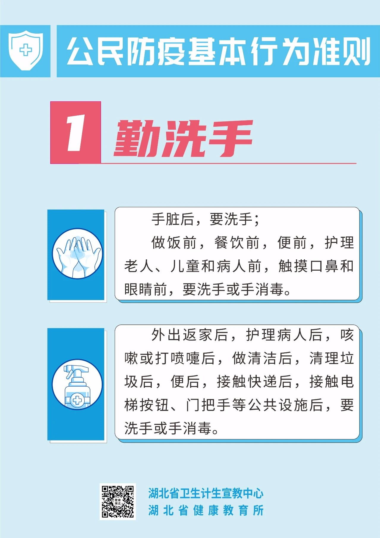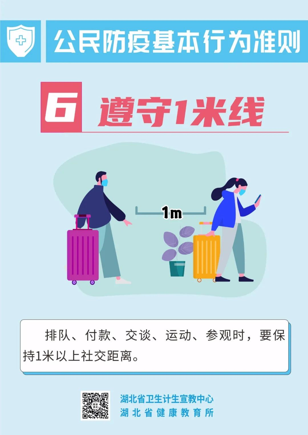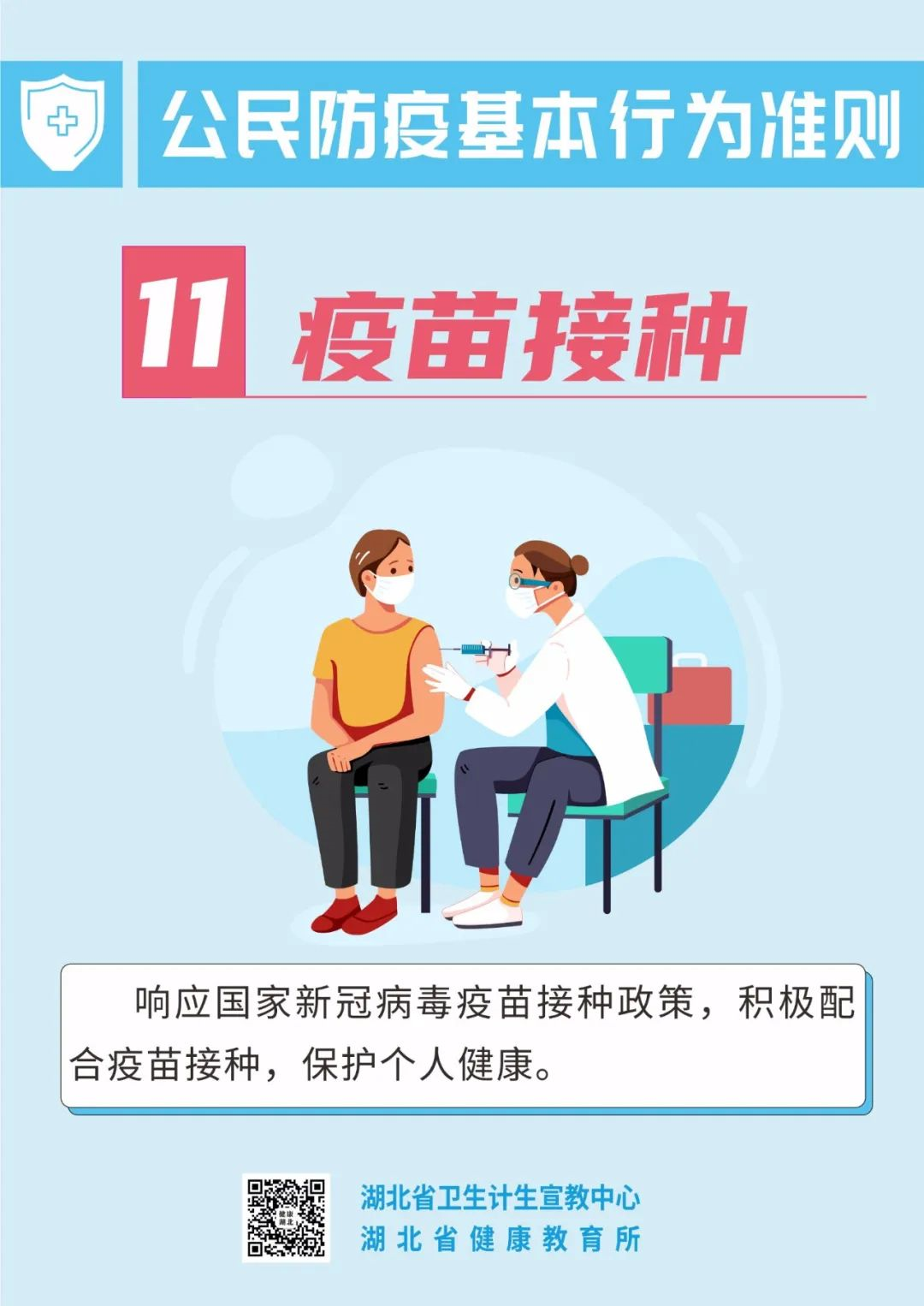 疫情尚未结束 防控仍然不能大意 “外防输入、内防反弹” 大家仍要保持警惕! 由于新冠病毒疫苗 尚不能百分百有效预防感染 因此,大家全程接种疫苗后 也不能放松警惕! 保持良好的防护意识和行为 请一起遵守 公民防疫基本行为准则! (来源:湖北省卫生计生宣教中心 中国疾控中心 健康与科普) 5