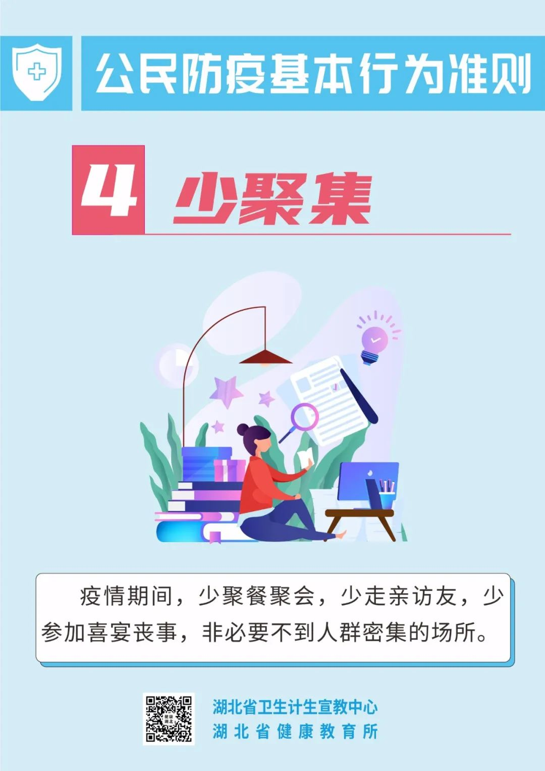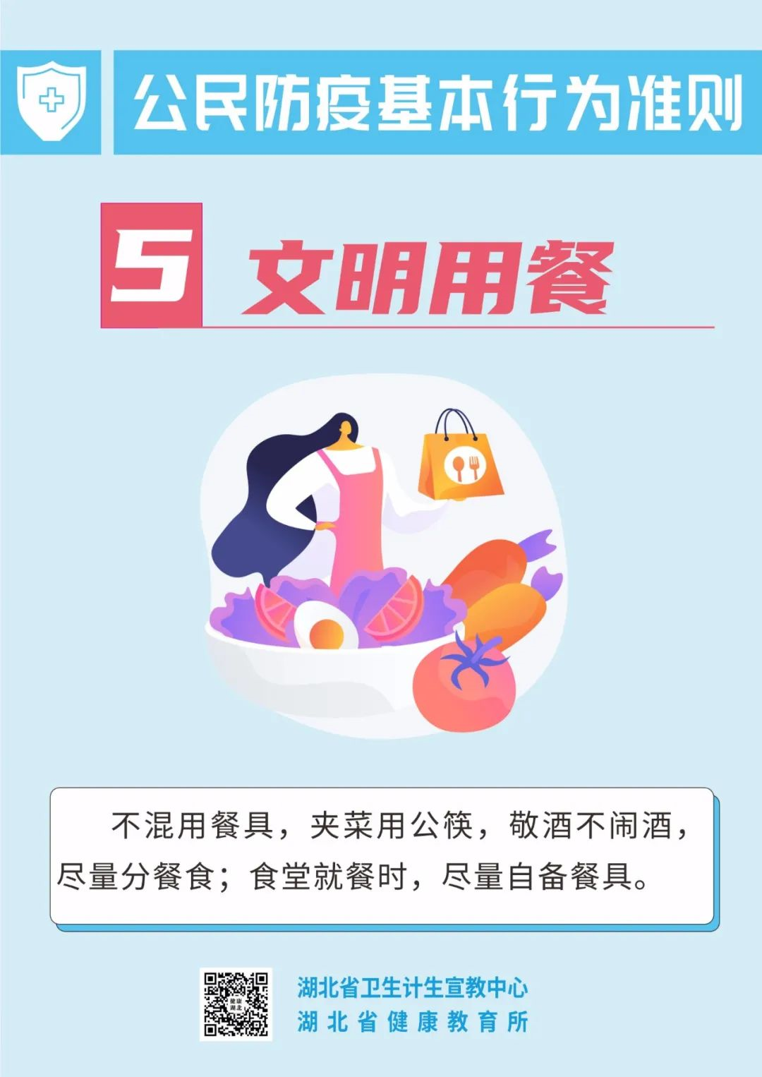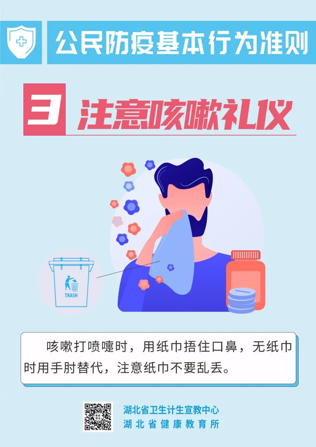 疫情尚未结束 防控仍然不能大意 “外防输入、内防反弹” 大家仍要保持警惕! 由于新冠病毒疫苗 尚不能百分百有效预防感染 因此,大家全程接种疫苗后 也不能放松警惕! 保持良好的防护意识和行为 请一起遵守 公民防疫基本行为准则! (来源:湖北省卫生计生宣教中心 中国疾控中心 健康与科普) 5