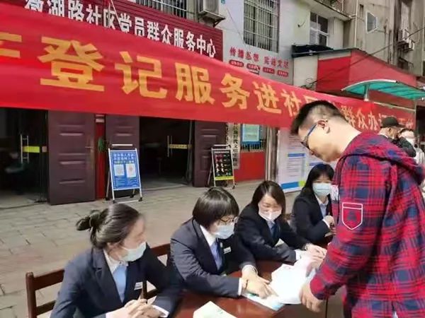 为深入推进党史学习教育,将学习成效转化为工作动力,武汉经开区(汉南区)自然资源和规划局不动产登记中心主动联合沌阳街金域蓝湾党群服务中心以及纱帽街薇湖社区组织开展“不动产登记进社区,让群众办证享无忧”活动。