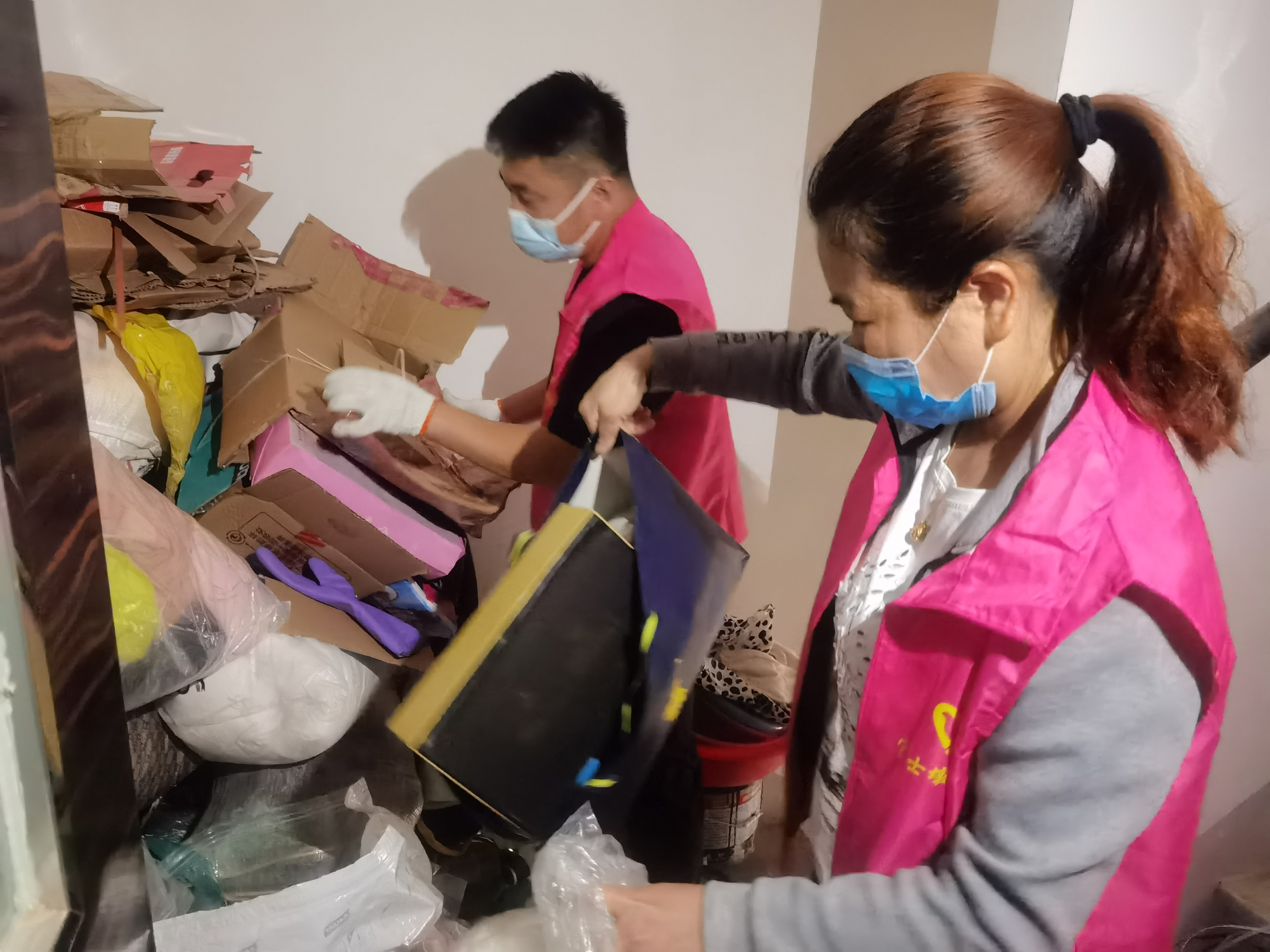 全体人员充分发扬雷锋精神,不怕脏、不怕累,集中清理楼道杂物。大家分工明确,齐心协力,将小区楼道内积存的大量木板,废旧家具、旧衣物等逐一搬下楼。经过一上午的努力,共清运满满20余车的杂物和垃圾,将小区里里外外打扫的干净整洁、焕然一新,得到社区居民一致赞扬。