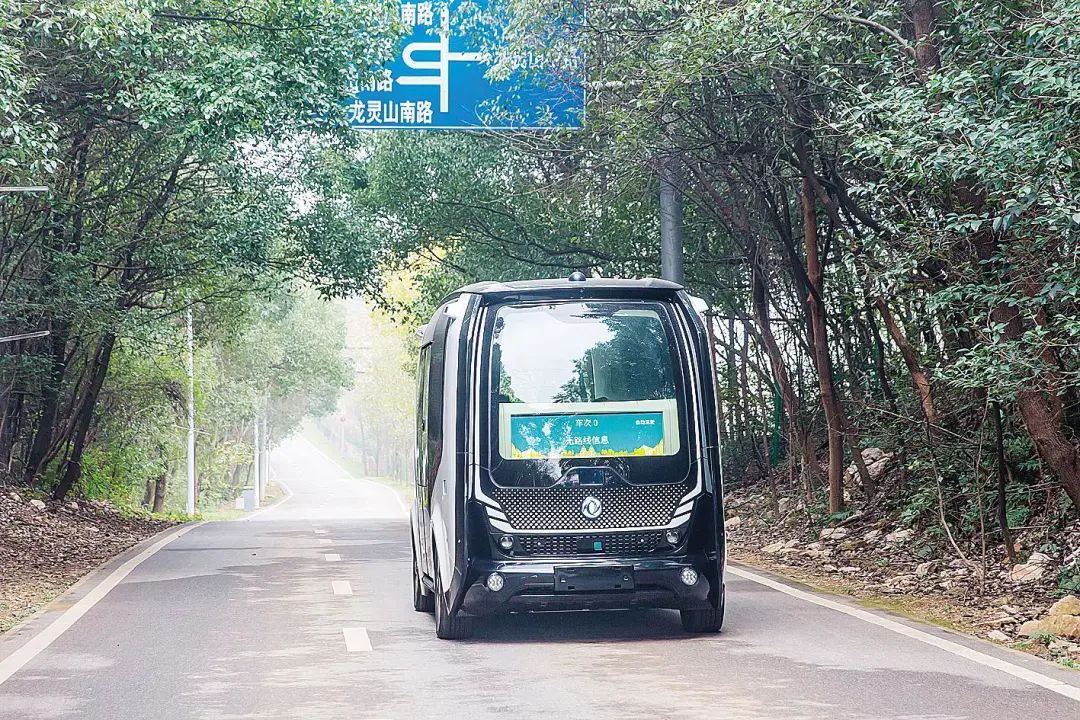 ▲龙灵山景区内,19辆自动驾驶汽车已投入运营。(记者 梅涛 摄)