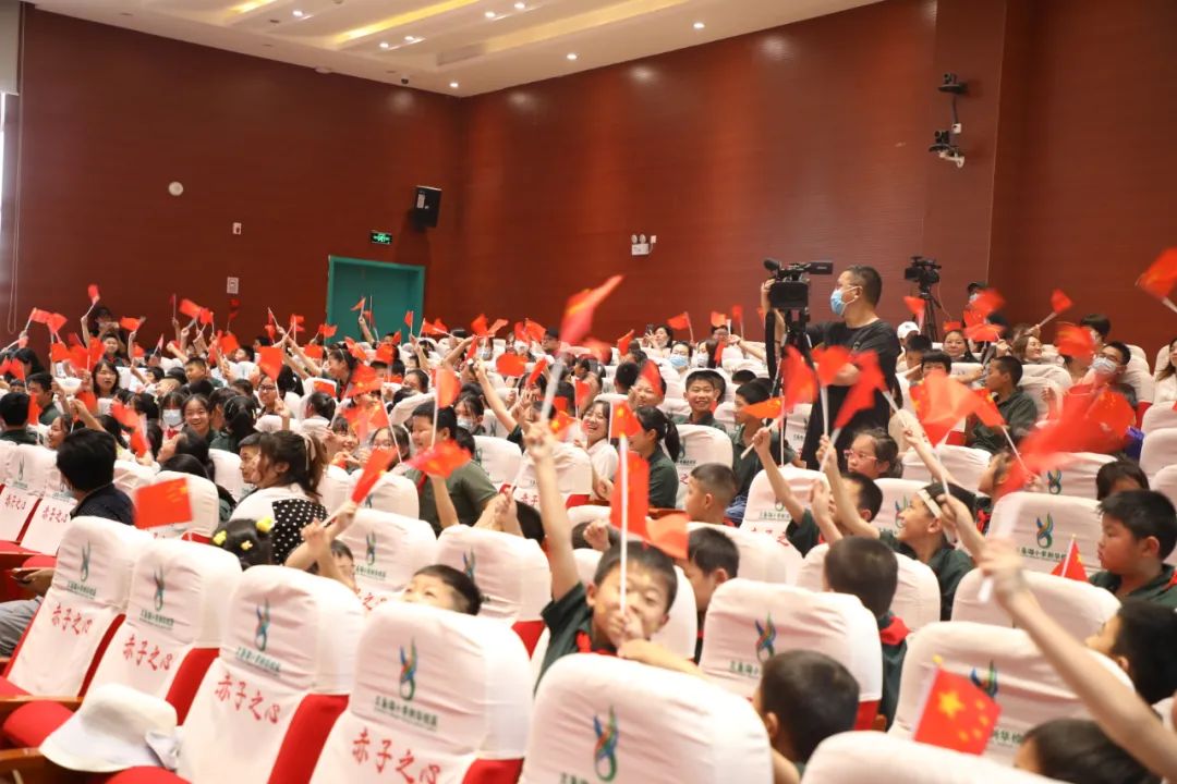 当天开营仪式,小学生们以运动员入场式进场,在国旗下以特殊的队列,向建党100周年致敬。