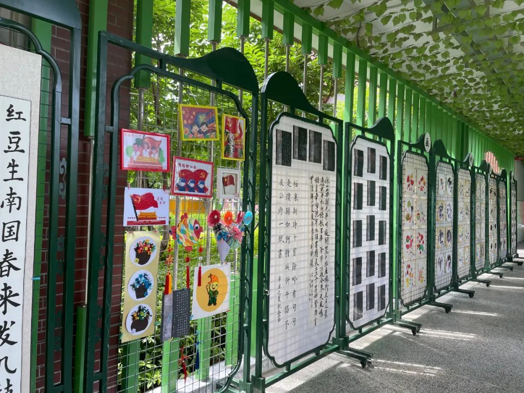 当天,校园里还开展了“艺彩流光·童心绽放”师生作品展,长廊里、梯间里、操场上,一幅幅主题突出、风格鲜明、稚趣盎然的书法美术作品,生动地展示出新华师生对生活的热爱和对艺术的追求。