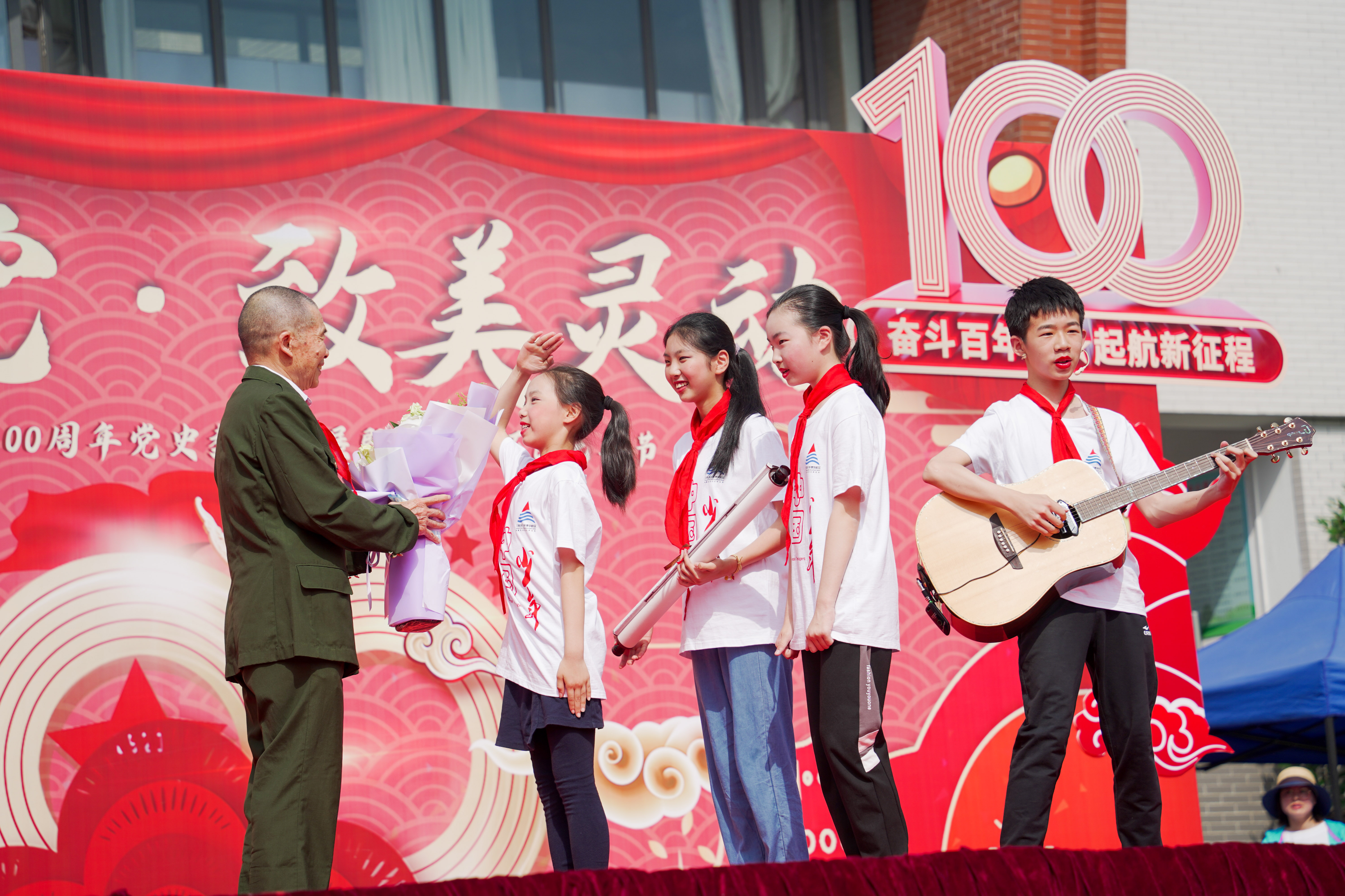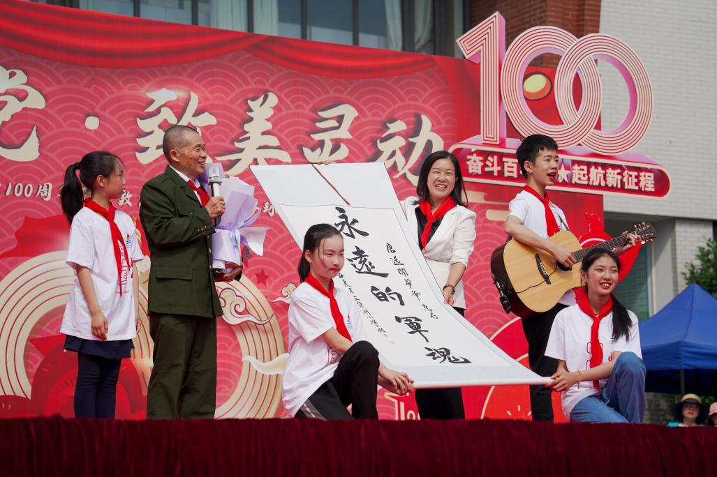5月31日,在“六一”儿童节来临之际,沌阳街退役军人服务站邀请老兵唐选开来到三角湖小学,参加“童心向党,致美灵动——三角湖小学庆祝建党100周年党史教育巡展暨2021年环创艺术节系列活动”。