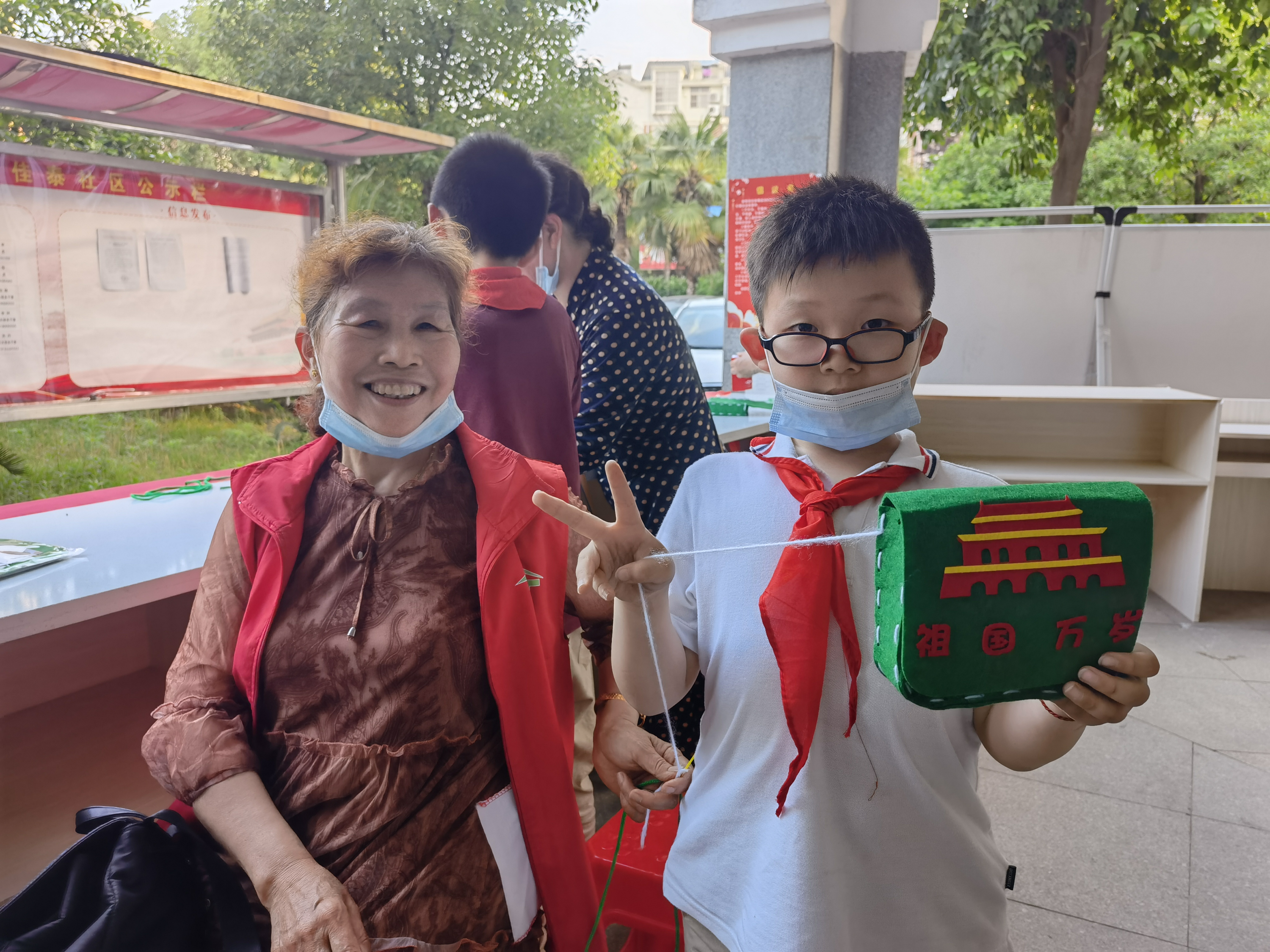 “小朋友们,你们画的环保袋真是太好看了!作为交换,我们也制作了爱国手工书包,愿你们茁壮成长,爱国爱党,将来为祖国添光溢彩!”博学华府小区的黄阿姨对着一群可爱的小朋友们竖起了大拇指。
