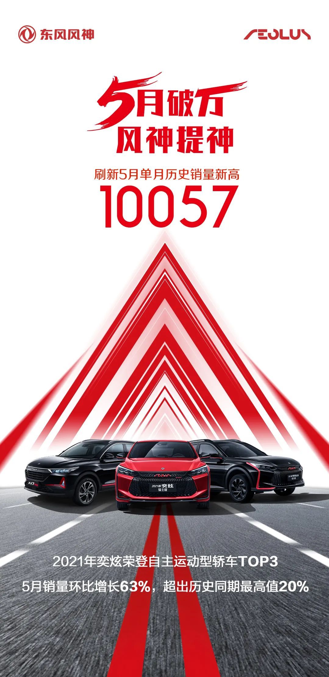 五月刚刚过去,就从东风乘用车公司传来好消息,5月份,东风风神销量达成10057辆,环比增长63%,超出历史同期最高值20%。