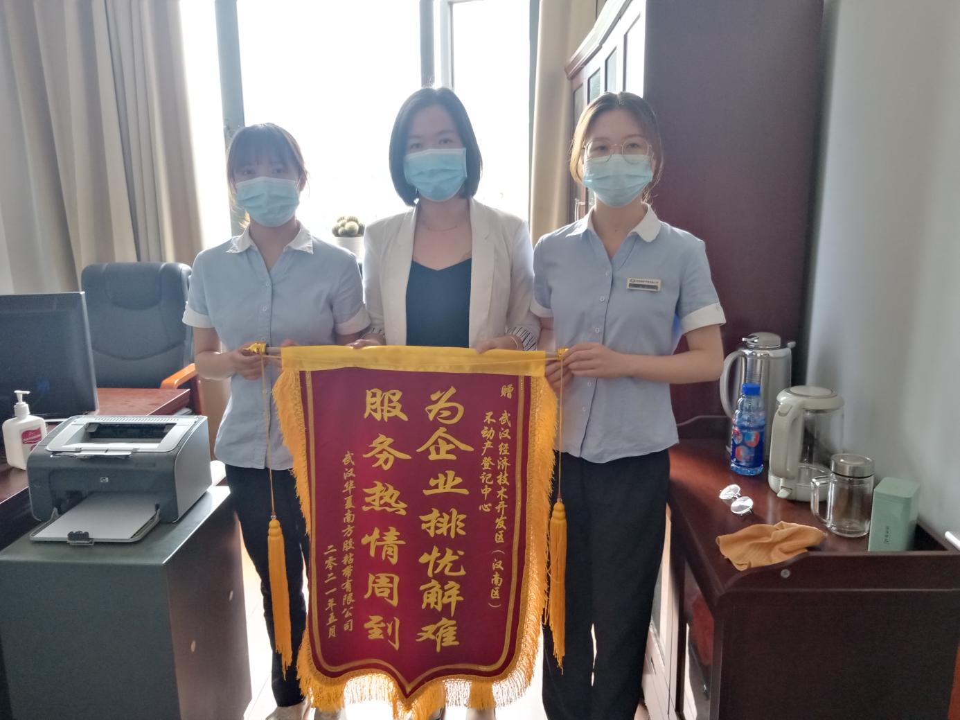 近日,武汉华厦南方胶粘带有限公司企业代表专程将一面“为企业排忧解难,服务热情周到”的锦旗送到区不动产登记中心汉南窗口,感谢区不动产登记中心真情实意,勇于担当,为企业排忧解难办实事的暖心服务。