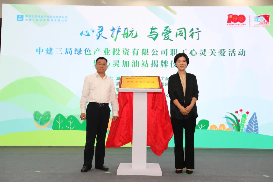当天,中建三局绿投公司“职工心灵加油站”正式揭牌,这是全区第二批建成的首家企业职工心灵加油站,第一批11家已经建成投入使用。