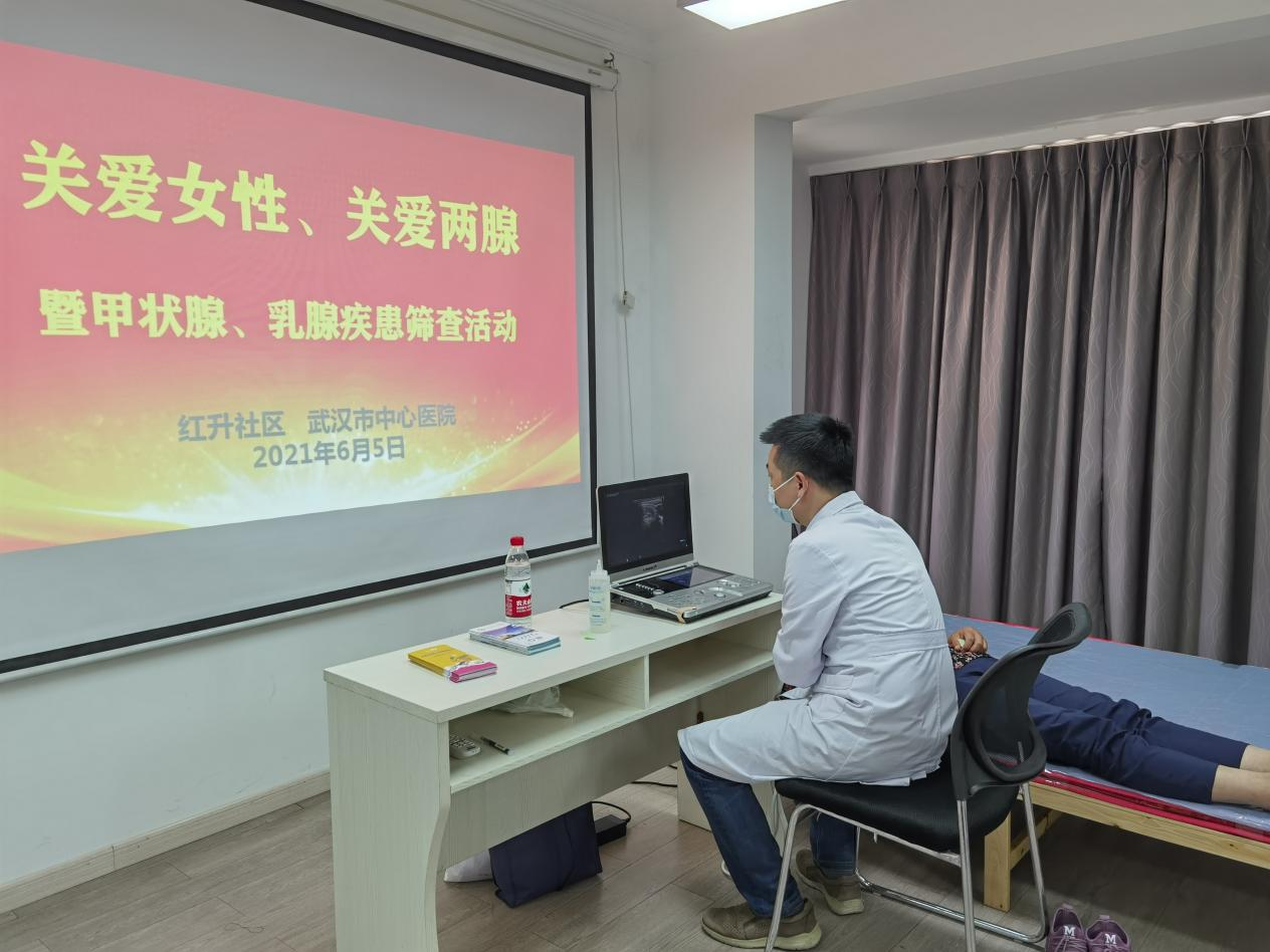 6月5日上午,来自武汉市中心医院甲乳外科党支部的10名下沉党员走进沌阳街红升社区,开展主题为“关爱女性、关爱两腺”筛查义诊活动,为居民检查身体、科普健康知识,让居民在家门口享受优质便民的服务。