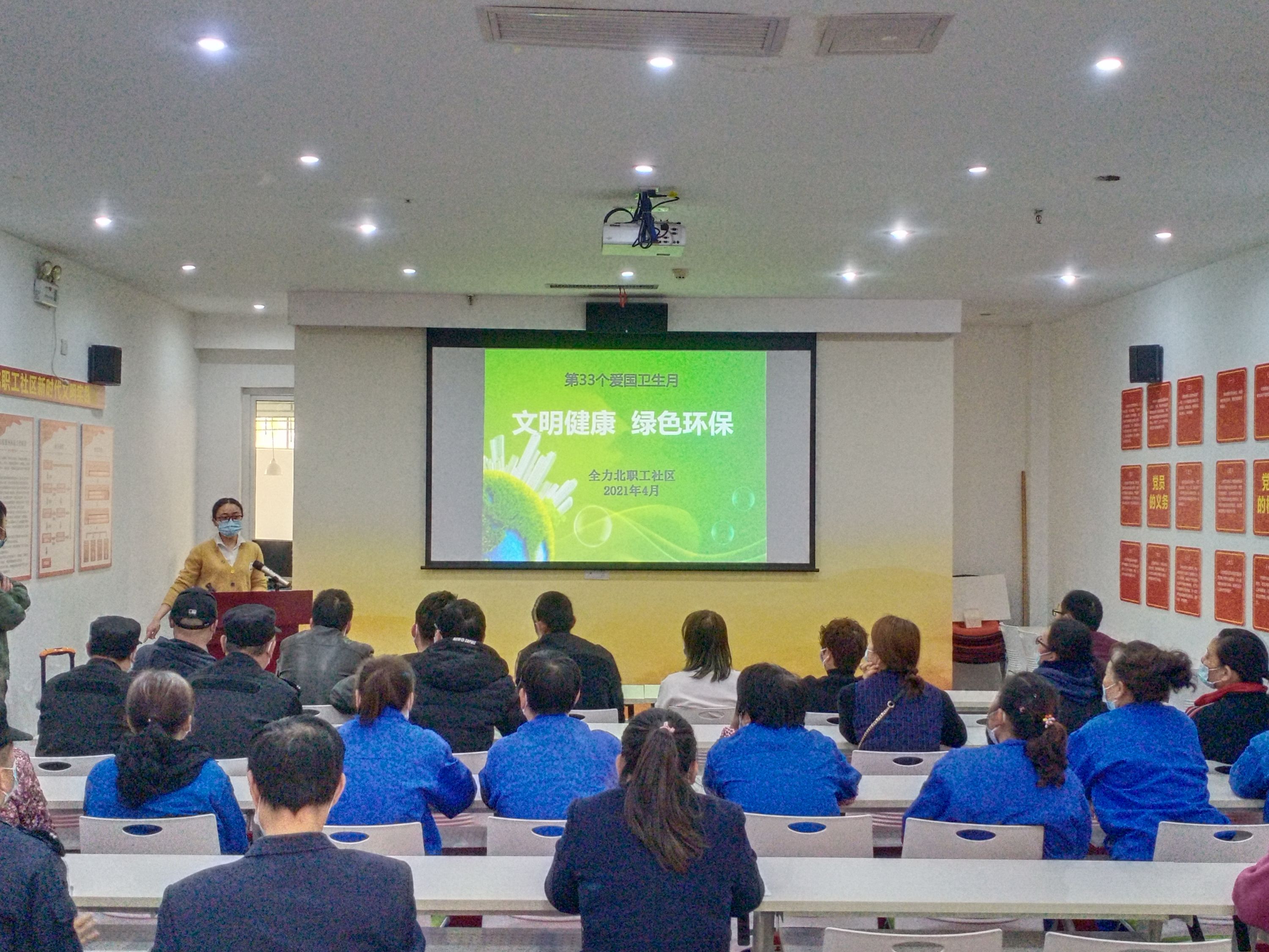 在辖区广泛举办系列宣传活动,线上通过微信群、微信公众号,线下通过小喇叭、横幅、海报、电子显示屏、讲座等方式,向职工居民宣传爱国卫生运动和健康生活的理念。