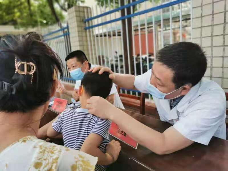 车谷融媒6月17日讯 6月16日,武汉大学人民医院汉南医院外科系统支部组织党员干部来到湘口街绿荫路社区,开展主题为“不忘初心学党史,健康义诊办实事”的义诊活动,为群众提供便捷、有效的基础医疗服务。