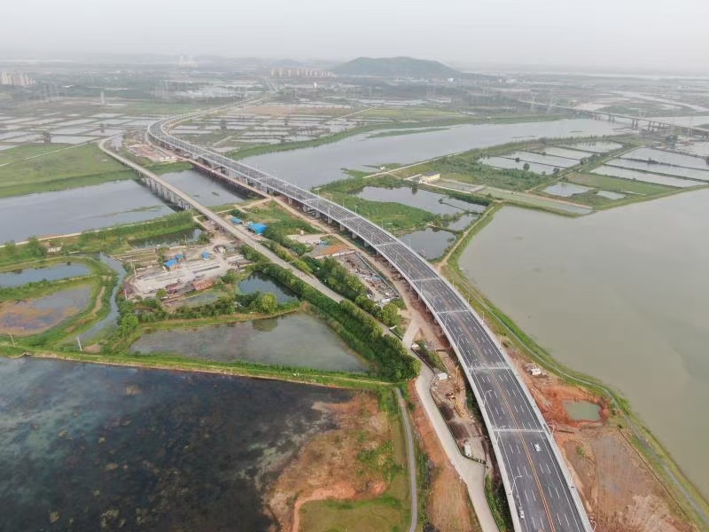 全长3598米的檀军公路是其中最大的单体项目,全长1779米的黄陵矶大桥则是檀军公路的重要组成部分,檀军公路属园区干线道路网络“四纵三横”中的一横,总投资约6.5亿元,除紧密连接起军山东西部,也是军山及智慧生态城连通汉南区、进出蔡甸区的重要通道。