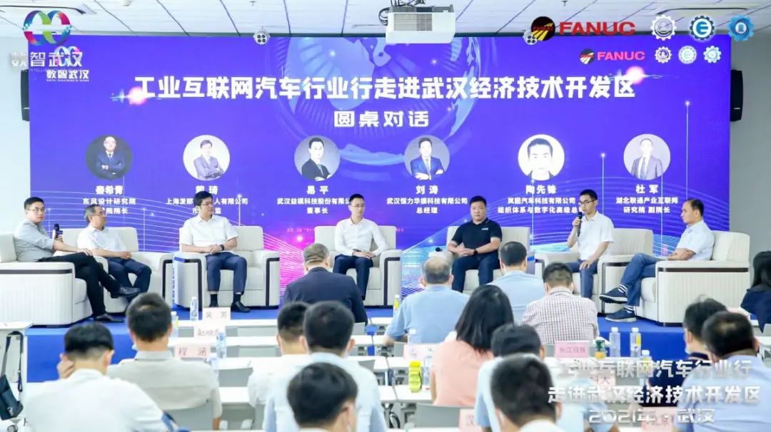 活动现场,东风设计研究院智慧院院长秦希青、武汉发那科机器人有限公司副总经理赵晓东、上海发那科机器人有限公司市场总监戴琦、武汉益模科技股份有限公司董事长易平等行业专家齐聚一堂,共话数字经济产业发展新路径,在分享工业互联网优秀案例的同时,为武汉市数字经济发展建言献策。