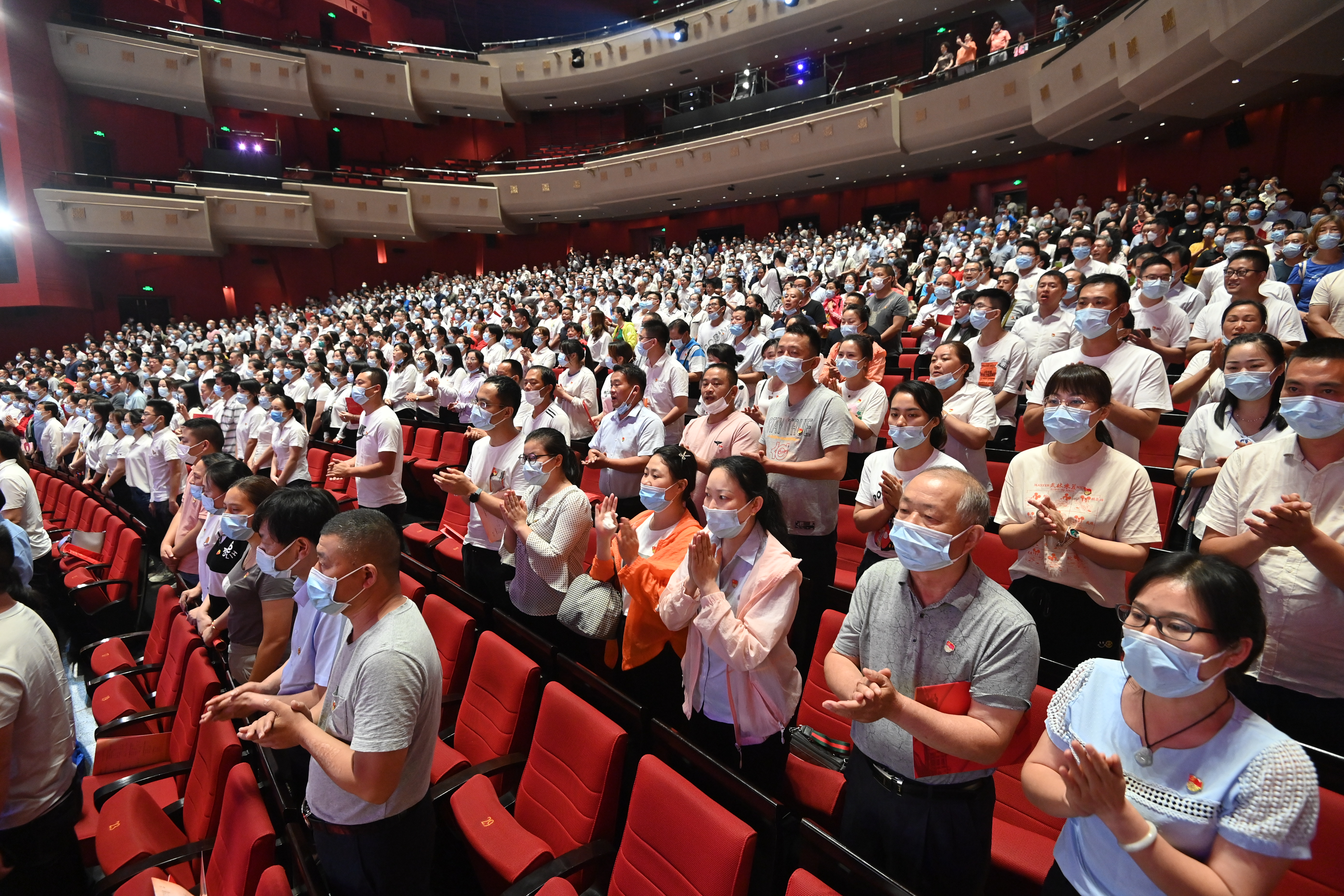 本次演出现场的1000多名观众均为武汉经开区党政机关、园区、街道、企事业单位的党员领导干部,以及基层党组织、抗疫先进个人和集体等代表。