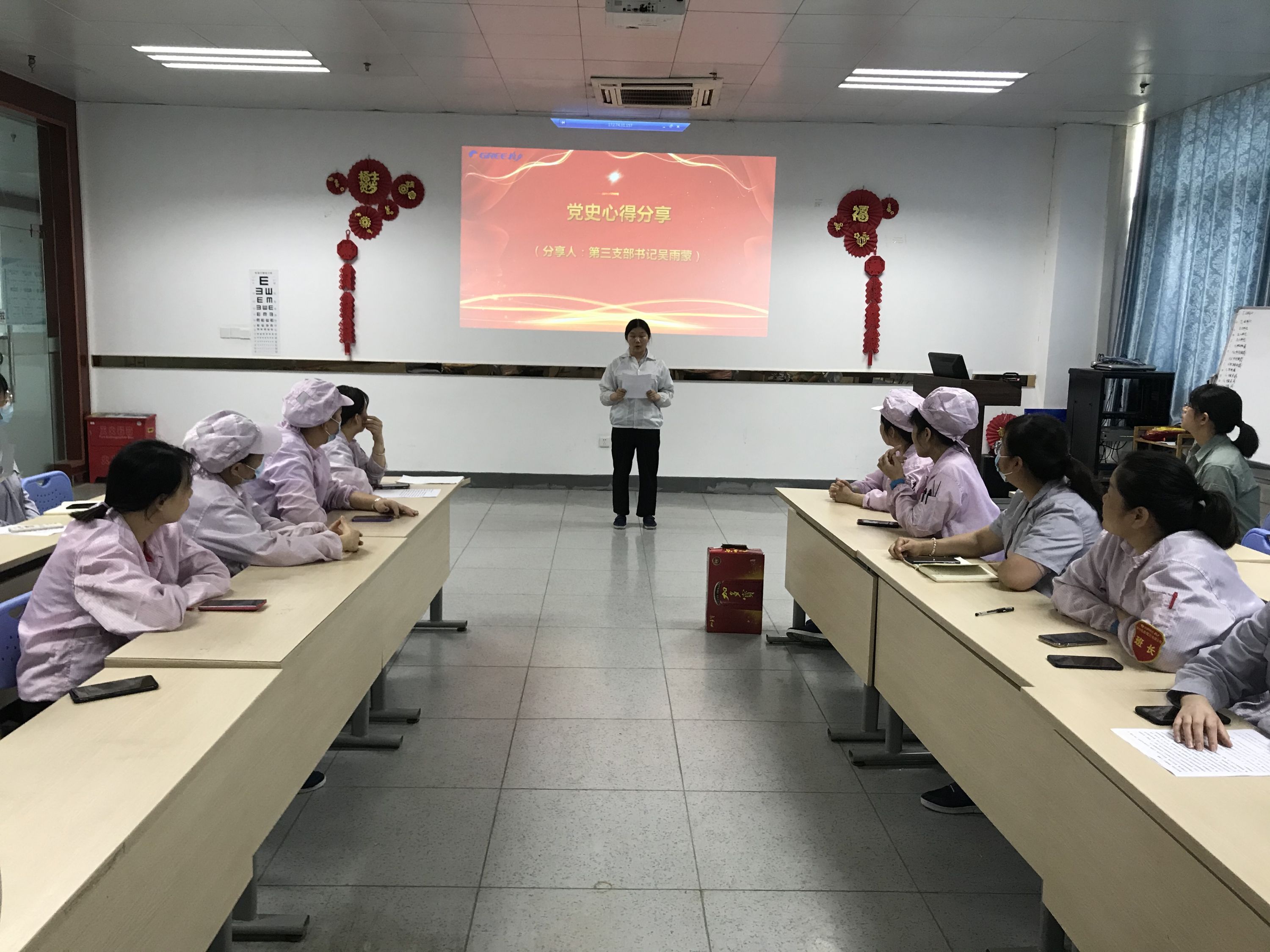 格力电器(武汉)有限公司第三支部书记吴雨蒙分享她的党史学习心得,她说:“作为新时代的共产党员,更要坚定信念,立足岗位,争先创优,将党员的先锋模范作用发挥到实处。”