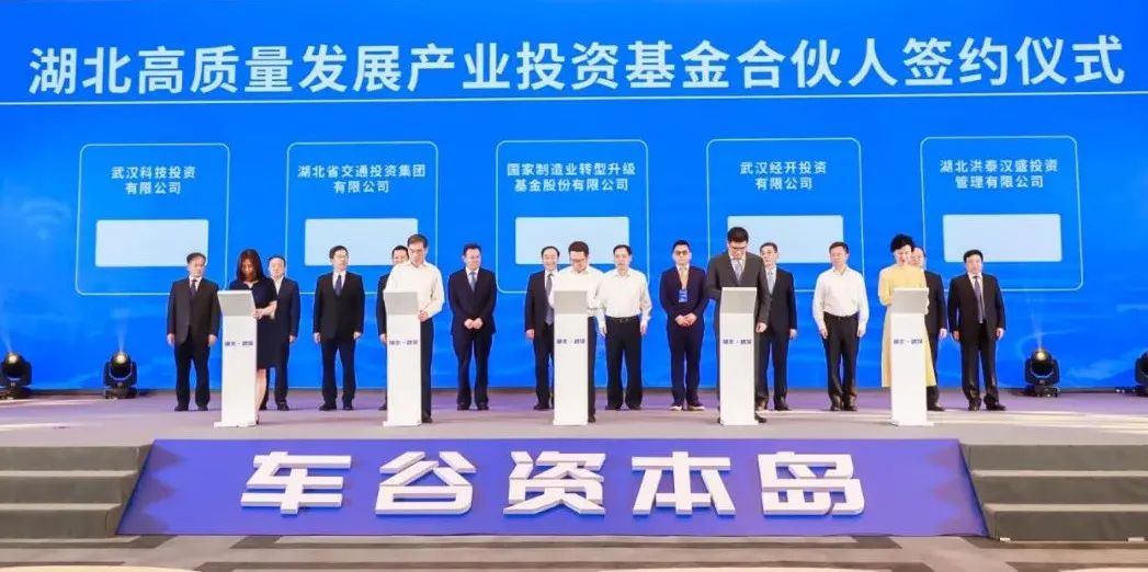 北京洪泰同创投资管理有限公司、国家制造业转型升级基金股份有限公司、湖北省交通投资集团公司、武汉科技投资有限公司、武汉经开投资有限公司签约成为湖北高质量发展产业投资基金合伙人。