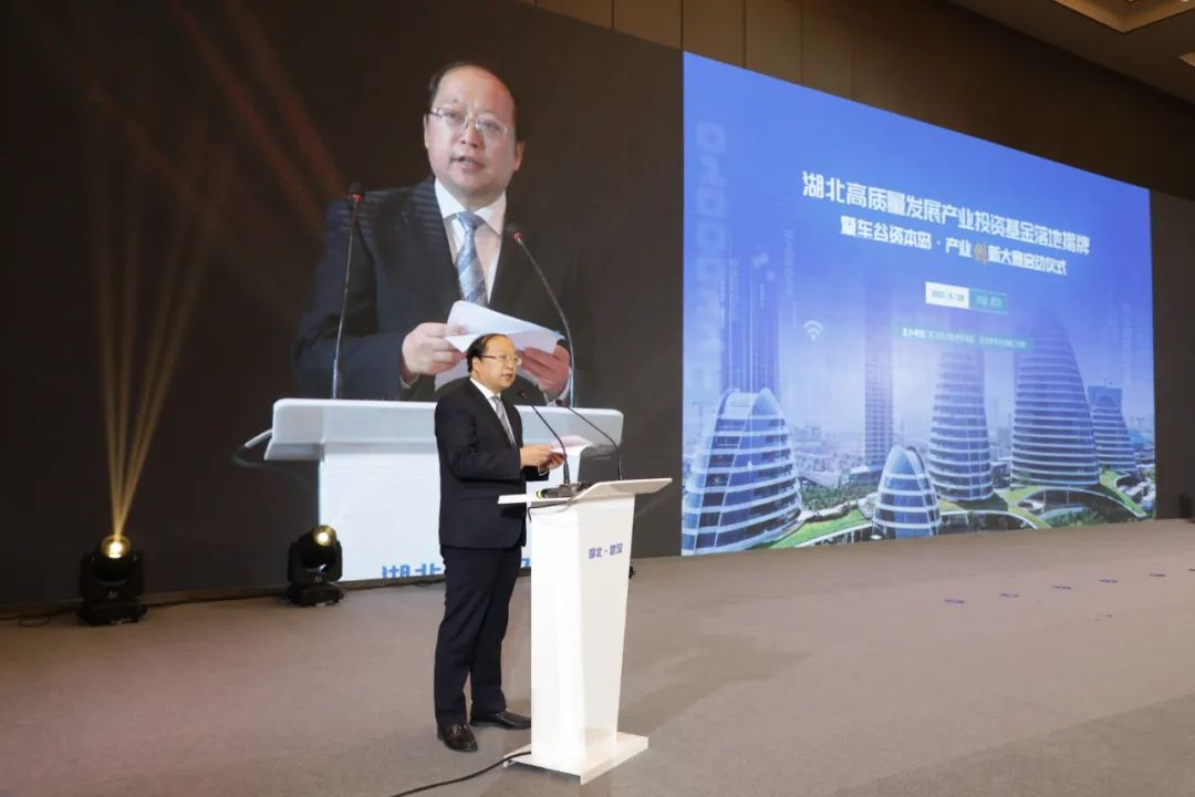 活动现场,赵海山、程用文、王占甫、盛希泰共同为湖北高质量发展产业投资基金揭牌。