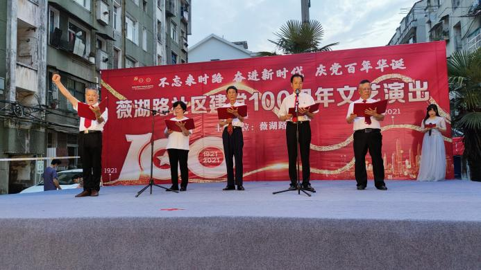 文艺表演环节,《没有共产党就没有新中国》《社会主义好》等合唱歌曲,唱出对党、对国家、对社会主义的真挚感情;社区老党员李想林自己作词一首,言简意骇地记录了我们党走过的辉煌100年;五位老党员带来诗朗诵《颂党恩》,情真意切地说出了自己对党的心里话;黄淑瑶小朋友为大家讲红色故事——《长征路上的红小丫》……精彩的表演赢得现场观众阵阵热烈地掌声。