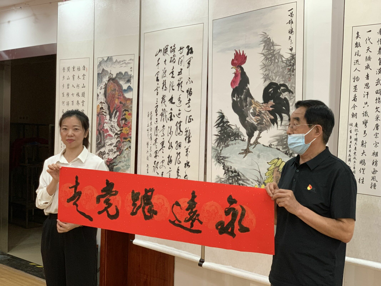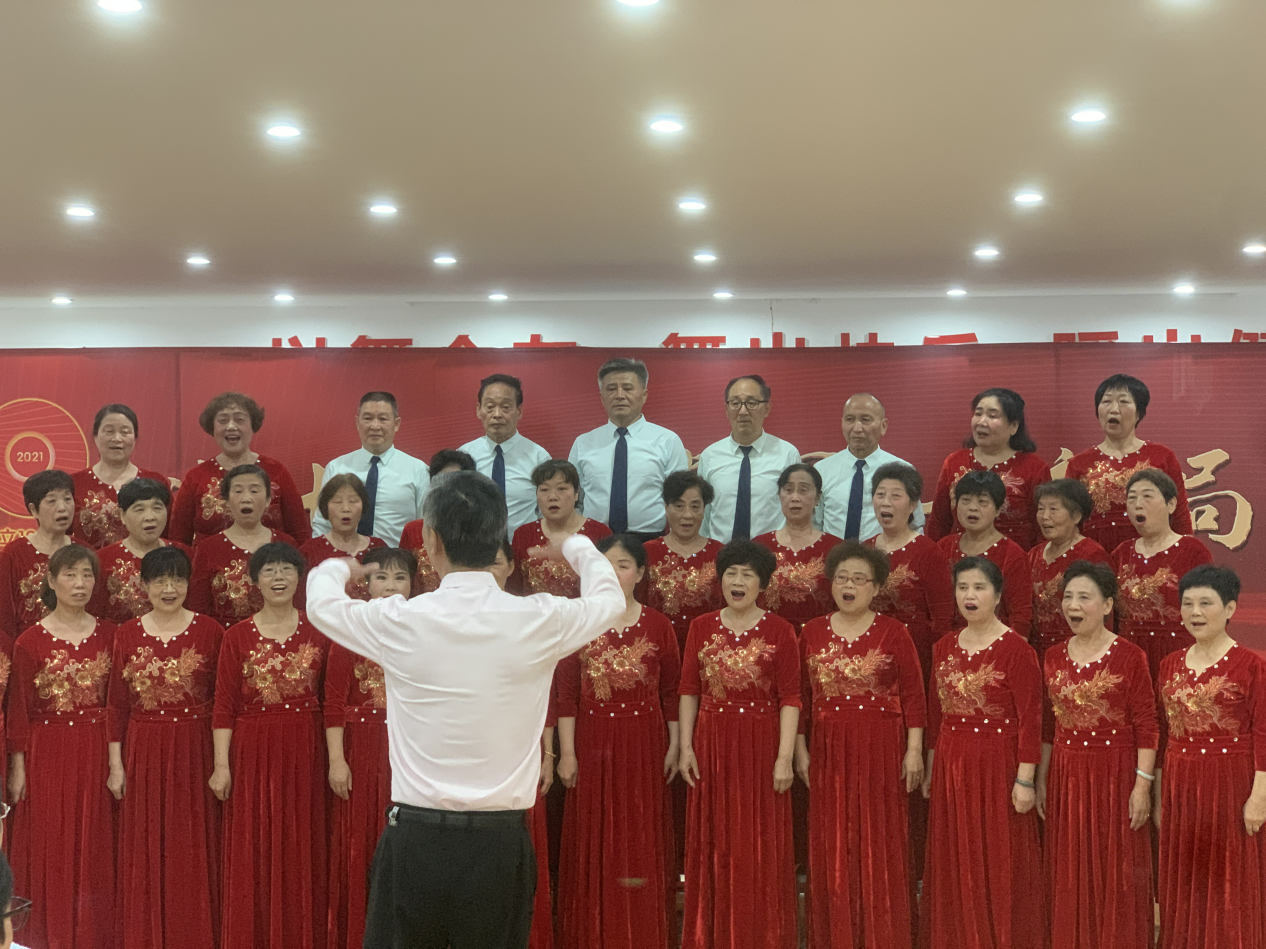 “光荣在党50年”纪念章颁发仪式后,阳光城社区阳光之声合唱团满怀着对党的热爱感激之情,通过大合唱、小合唱、重唱并穿插着书画表演等多种形式齐声唱响《党啊,亲爱的妈妈》、《江山》、《没有共产党就没有新中国》等红色歌曲,用激昂的歌声唱出对党、对祖国最真挚的情感和最诚挚的祝福。