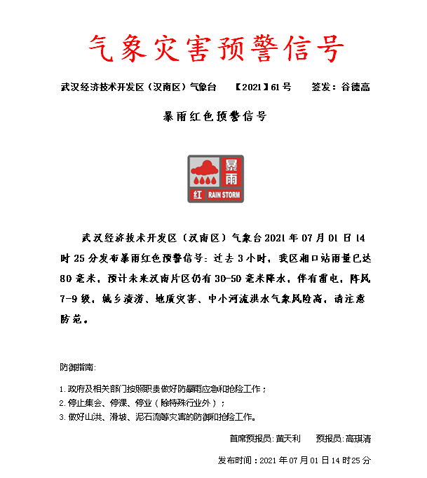车谷融媒7月1日讯 根据近期重大气象资料专报分析,预计7月1日至5日武汉经开区(汉南区)有一段集中降水期,并伴有短时强降水和雷暴大风等强对流天气。经开区防办提醒广大居民密切关注天气变化,注意自身安全。