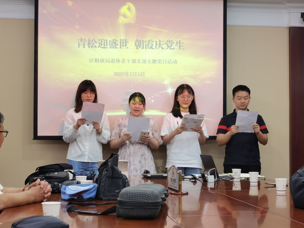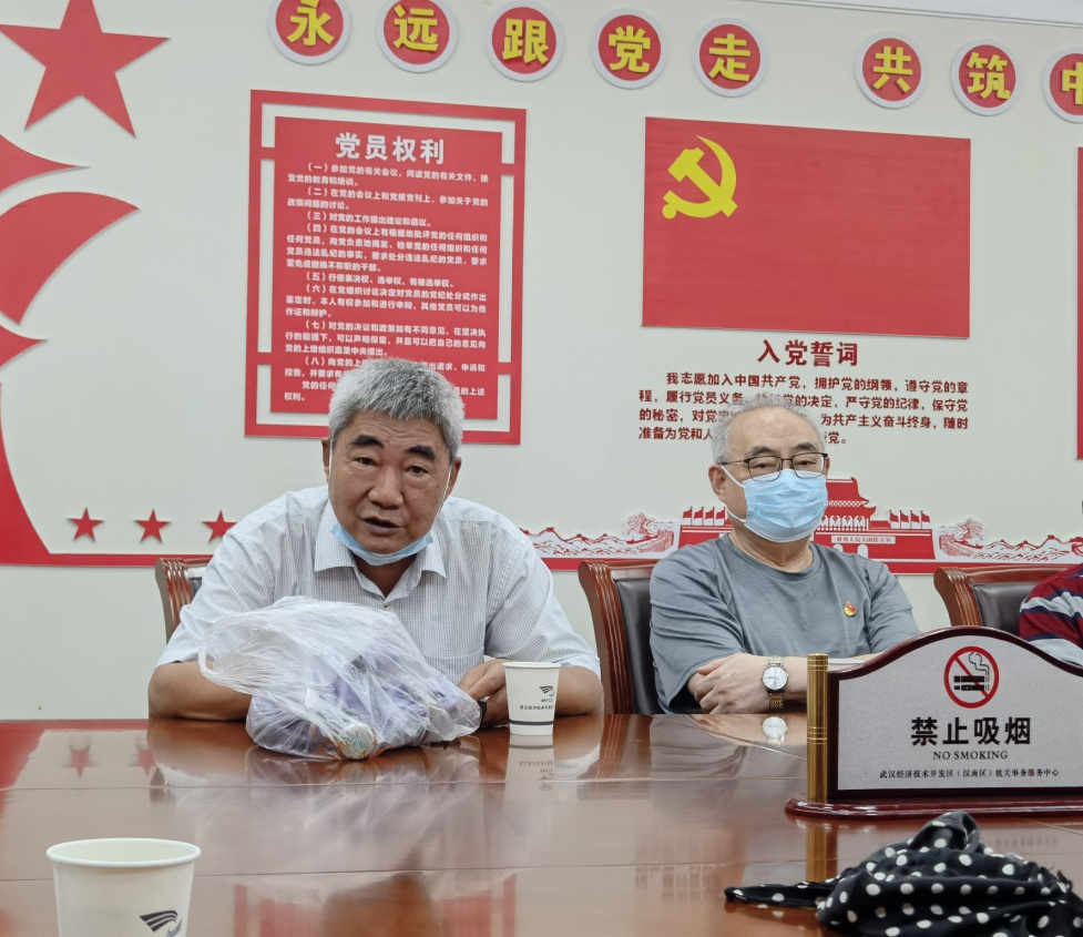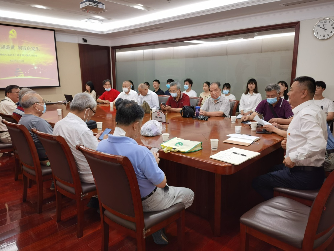 车谷融媒7月2日讯 7月1日上午,武汉经开区财政局退休老党员与新入职青年欢聚一堂,开展“青松迎盛世·朝霞庆党生”主题活动,共庆建党百年。
