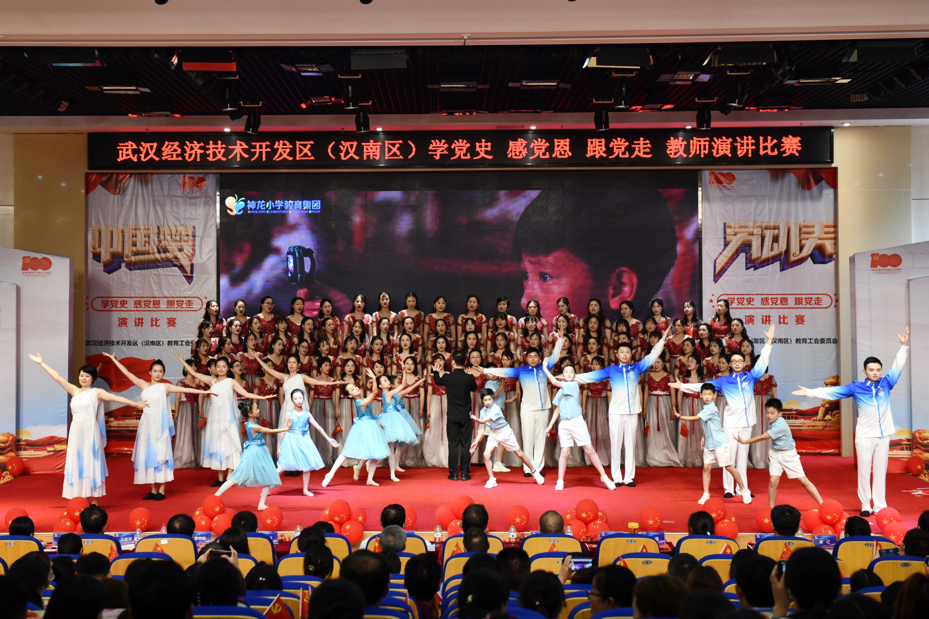 “民族一心,建国伟业”环节,老师们用书法献礼党的百岁生日,用嘹亮的歌声扣响时代篇章。刘方敏校长表示:“我们以这样的形式学习党史,赓续红色基因,更在活动中激励教师们肩负时代使命、立德树人,做四有教师、不忘初心,砥砺前行”。