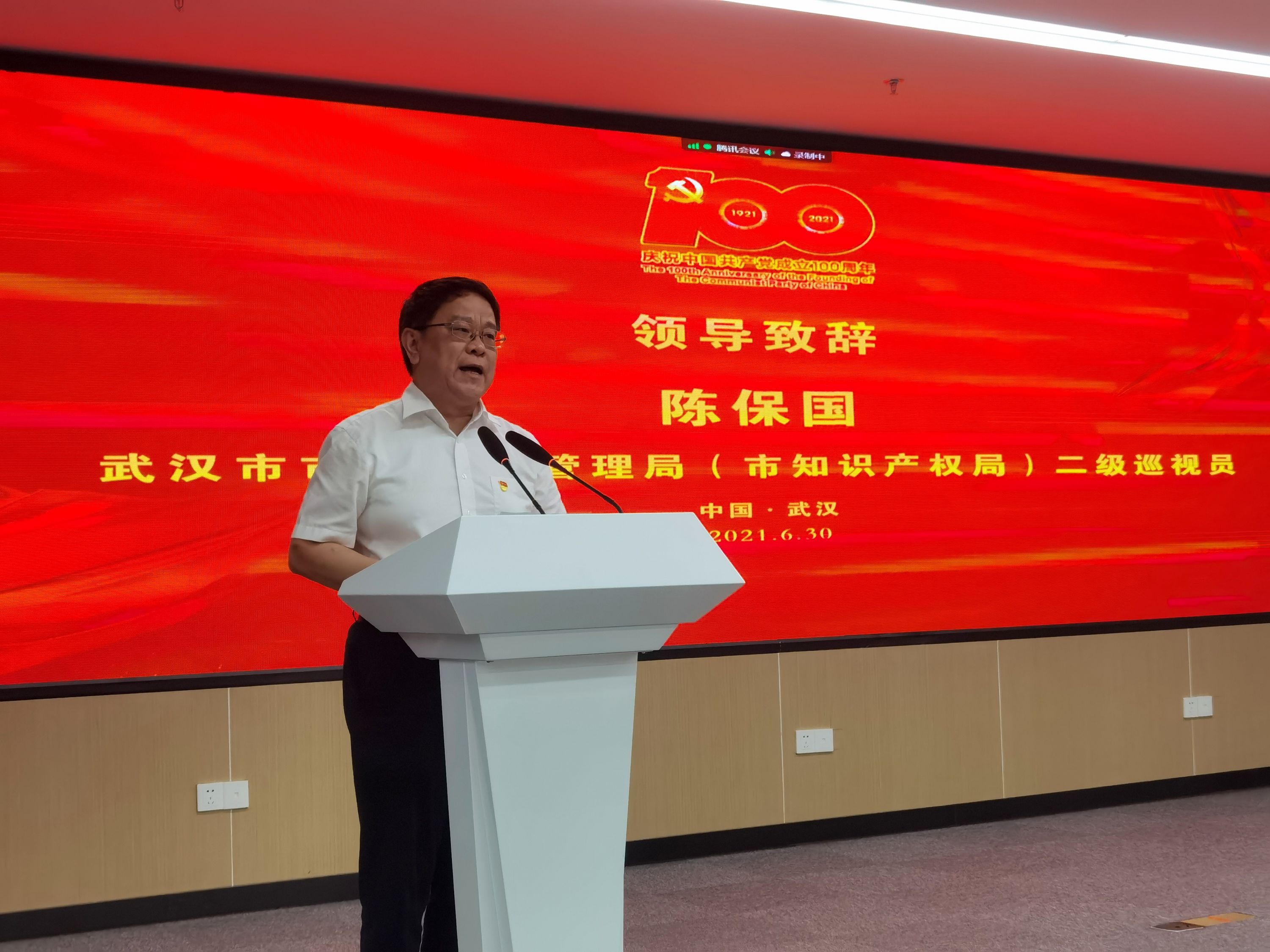 武汉市市场监督管理局(知识产权局)二级巡视员陈保国在会上致辞,他希望广大知识产权青年提高政治站位,围绕服务武汉“五个中心”建设,突出工作重点、磨砺工作能力,统筹兼顾,以更加昂扬的斗志、更加饱满的热情、更加奋进的姿态,为武汉知识产权事业贡献青春力量,以优异的工作成绩庆祝建党100周年。