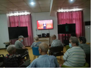 当天上午,全区各养老院组织老人们集体观看《庆祝中国共产党成立100周年大会》电视直播节目,带领老人们一起回顾党的光辉历程,感受祖国繁荣发展。