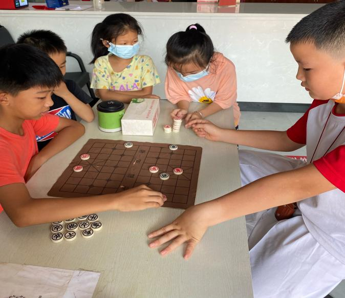 在游戏环节,孩子们在欢声笑语中相互认识、加深了解、增进友谊。学员们高兴地说:“这是我第一次参加暑期托管班,在这里能学到知识,还能交到好朋友,很有趣,我很喜欢,以后我会天天来。”