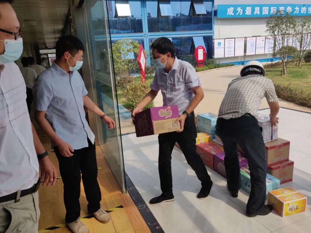 接受完捐赠物资后,军山新城立即组织物资登记、分配,第一时间启动转运,下午4时许,所有物资已全部送达施工单位手中。